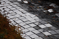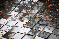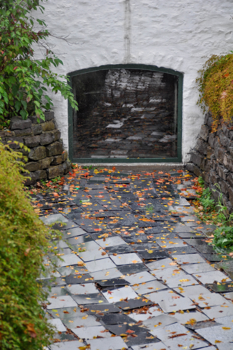 Ces milliers de plaquettes réfléchissantes épousent le lit de la rivière qui jadis activait un moulin à farine. Comme les gouttelettes qui composent les cours d'eau, chaque fragment dévoile son potentiel lorsqu'il est juxtaposé à ses semblables. Une fois ces fragments rassemblés, leurs arêtes droites s'estompent. Elles laissent place à une multitude de points scintillants qui se déploient en une étendue sinueuse et apaisante.