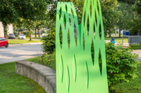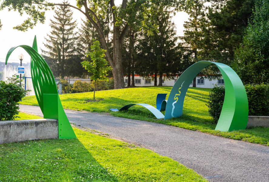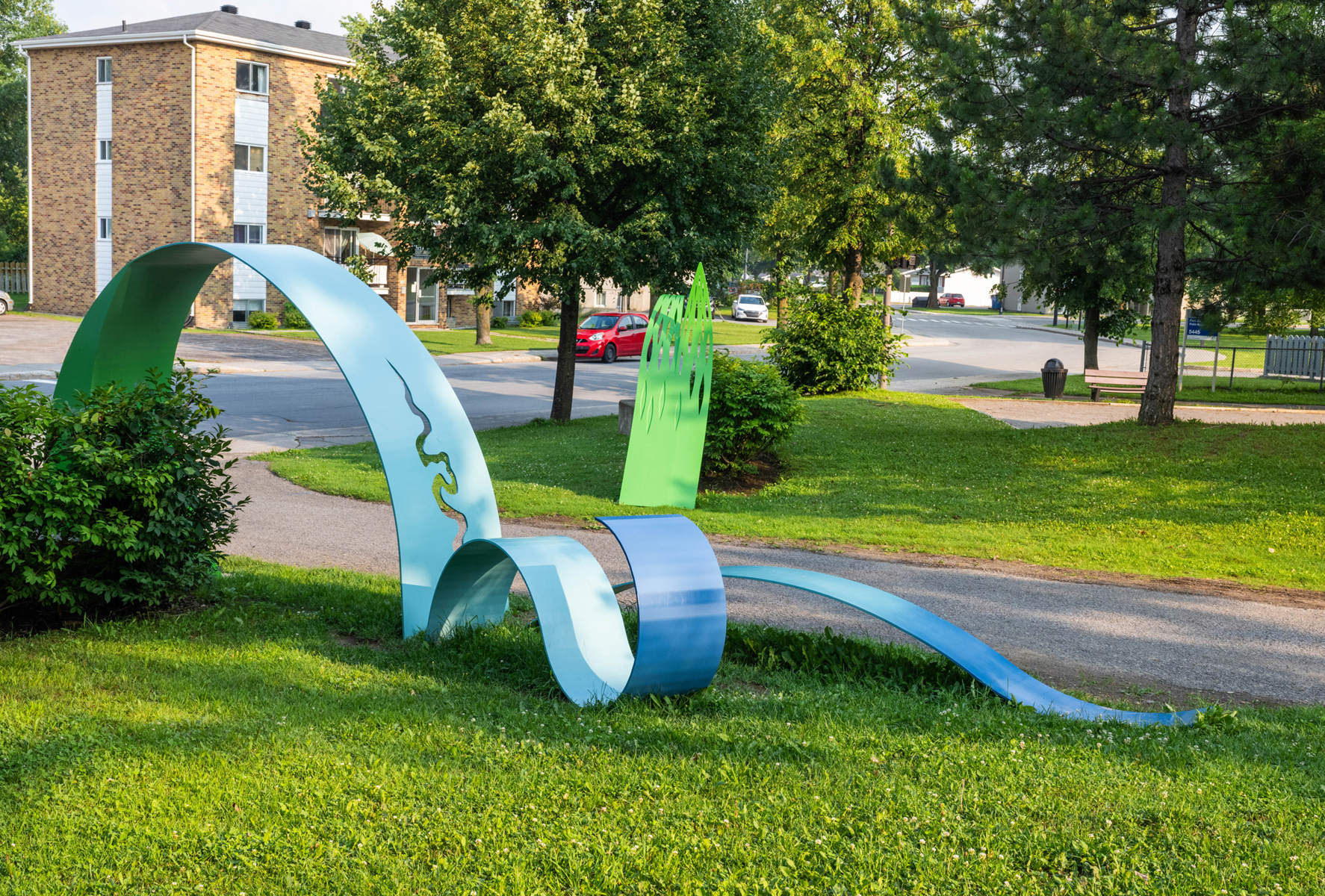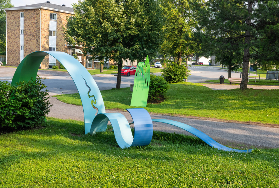 Cette œuvre signale l'entrée du parc du Petit-Bois et exprime l'identité du quartier. Ses formes évoquent les méandres de la rivière et les feuilles de saule, deux éléments emblématiques du secteur. Sur le plan conceptuel, la création représente le dynamisme, l'accueil et le multiculturalisme. Certains éléments de l'œuvre se déploient en hauteur, d'autres à échelle humaine. En effet, deux rubans virevoltants se déroulent le long du sentier, invitant petits et grands à y jouer ou à s’y asseoir.
