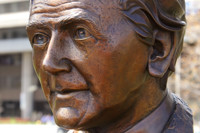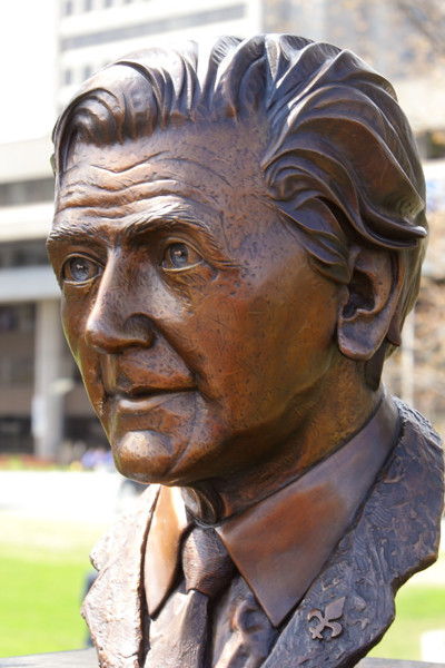 Ministre dans le gouvernement de René Lévesque de 1977 à 1984, Camille Laurin fait adopter la Charte de la langue française, ou loi 101, par laquelle le français devient la langue officielle du Québec. Le buste est une réplique de celui qui a été installé près de l’édifice Camille-Laurin à Montréal. Le socle est gravé d’une citation de l’homme politique, pour qui « la langue est le fondement même d’un peuple ».