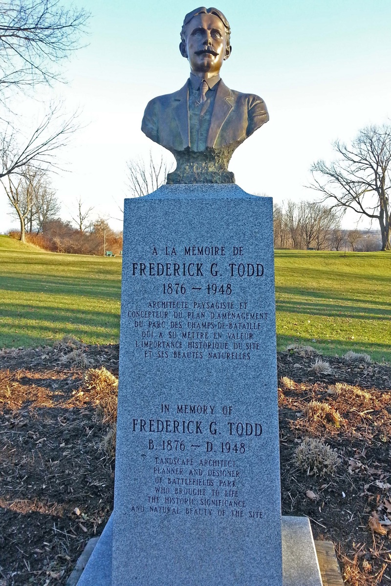 Frederick G. Todd est considéré comme le premier architecte paysagiste au Canada. Il conçoit en 1909 le plan d’aménagement des plaines d’Abraham, futur parc des Champs-de-Bataille, dont les travaux vont s’échelonner sur 50 ans.