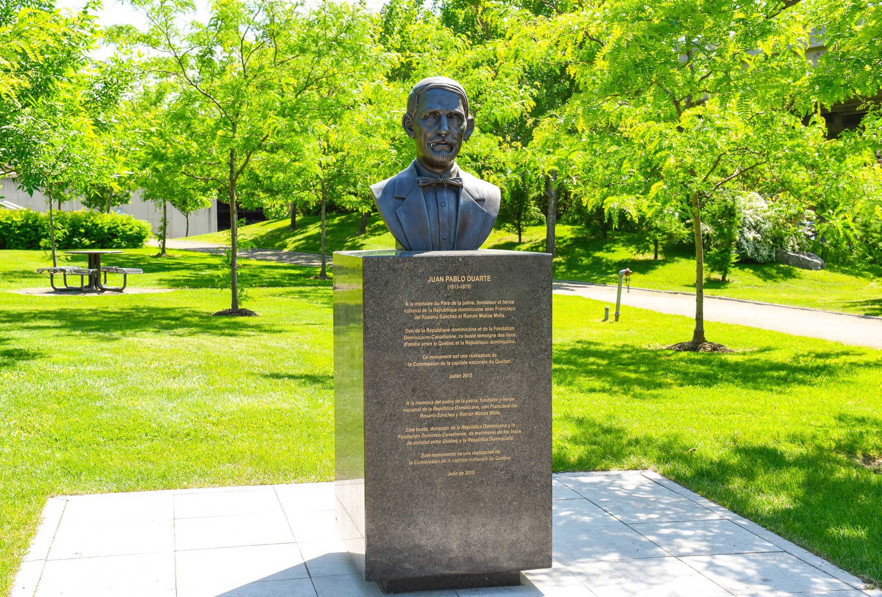 Conçu par le sculpteur Domingo Guaba, le buste de Juan Pablo Duarte a été dévoilé le 15 juillet 2015 par la Commission de la capitale nationale du Québec, en présence de la consule générale de la République dominicaine, madame Raquel Jacobo de Cabral et du directeur général des affaires bilatérales au ministère des Relations internationales et de la Francophonie, monsieur Jean Saintonge.