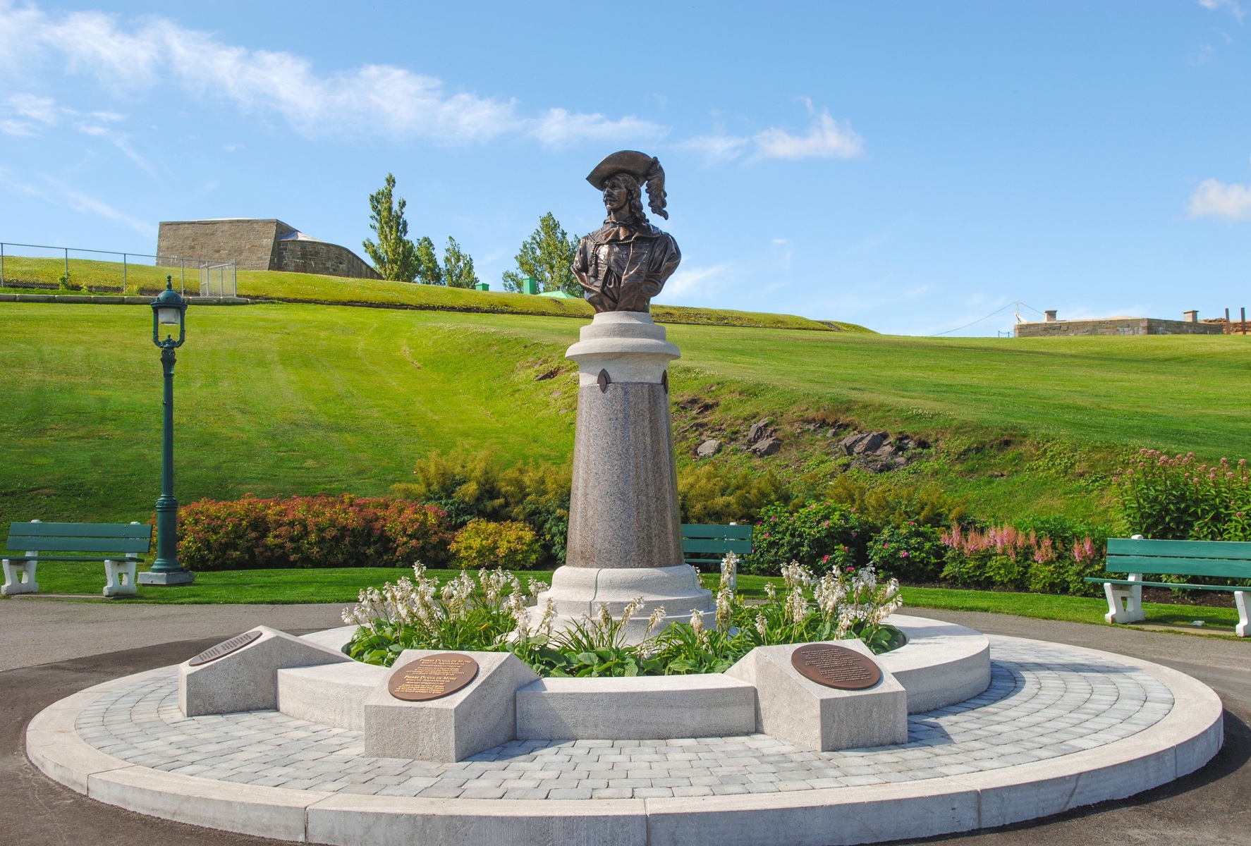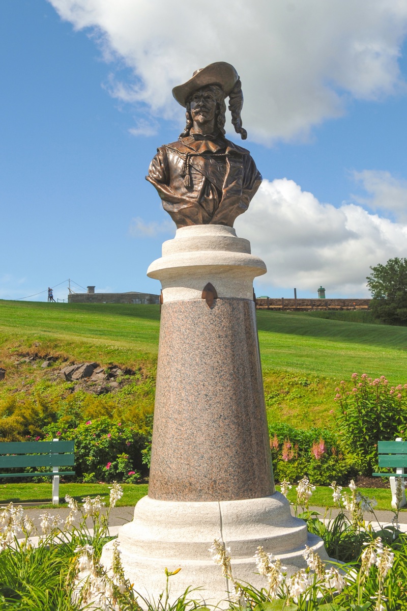 Le buste de Pierre Dugua de Mons, lieutenant général du roi Henri IV et cofondateur de Québec, est une réplique de celui qui a été installé vers 1904 à Annapolis Royal, en Nouvelle-Écosse. Il prend place sur une hauteur que Champlain lui-même avait nommée « Mont du Gas » dans un récit de 1613. Le monument rend enfin justice au sieur de Mons en rappelant le rôle central qu’il a joué dans l’histoire de la Nouvelle-France.