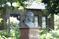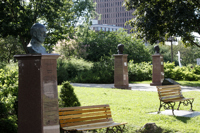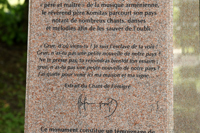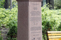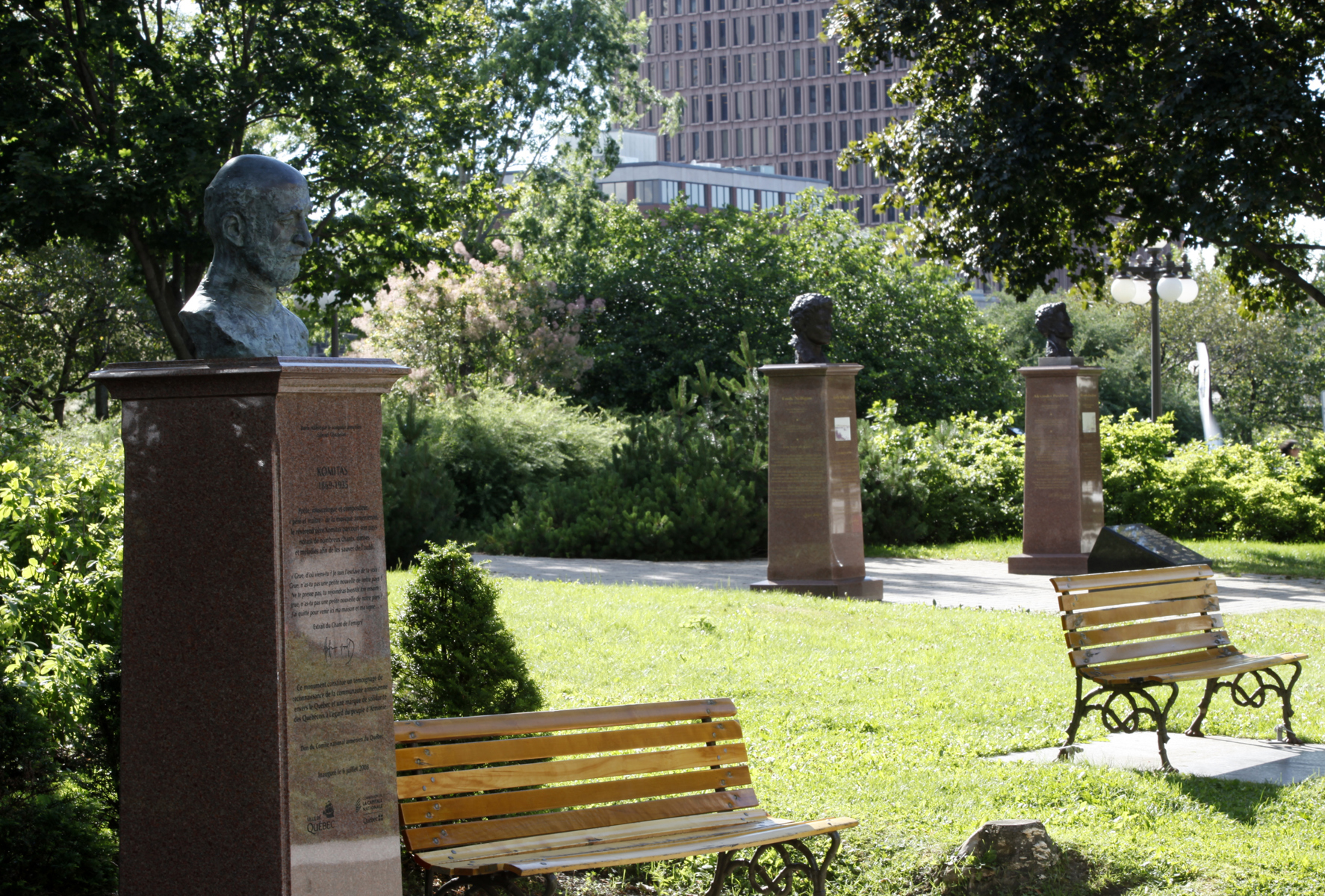 Komitas (1869-1935) est considéré comme le « père et le maître » de la musique arménienne. Il a parcouru les campagnes d’Arménie à la recherche de danses et de chansons populaires qu’il a fait connaître dans le monde. Incarnant l’esprit d’ouverture aux autres cultures, il constitue un symbole d’unification et sa musique est omniprésente chez les Arméniens du monde entier. Le piédestal comporte un extrait d’une chanson qu’il a écrite. Le buste est un don du Comité national arménien du Québec.