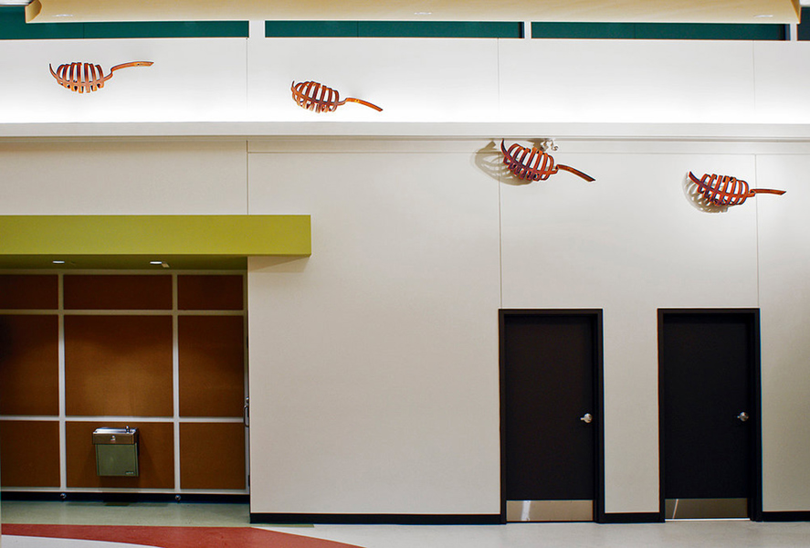 Cette installation est composée de 17 éléments ayant l’apparence de bestioles.  Celles-ci longent les murs du corridor central, formant un parcours sinueux et rythmé que le regardeur est invité à suivre.