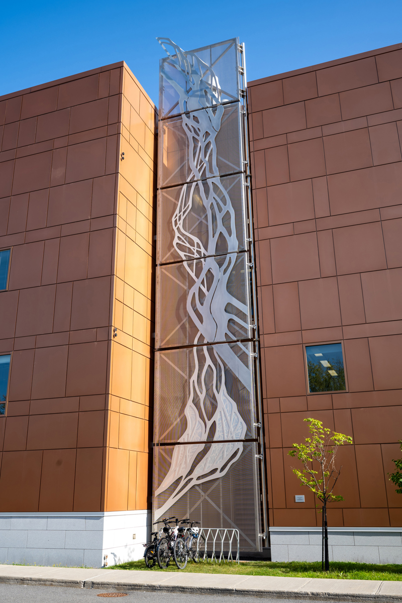 L'œuvre, réalisée dans le cadre de la Politique d’intégration des arts à l’architecture et à l’environnement, est située sur le mur nord de l'IUCPQ, visible depuis l'entrée du chemin Sainte-Foy.