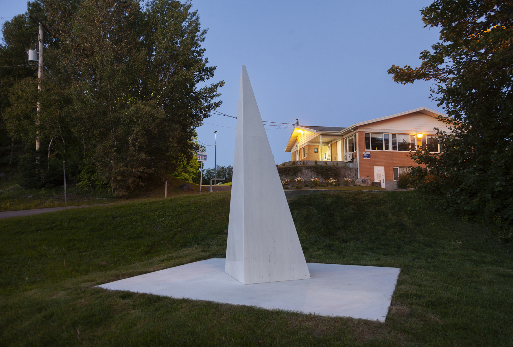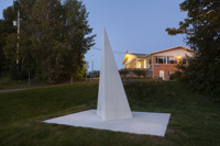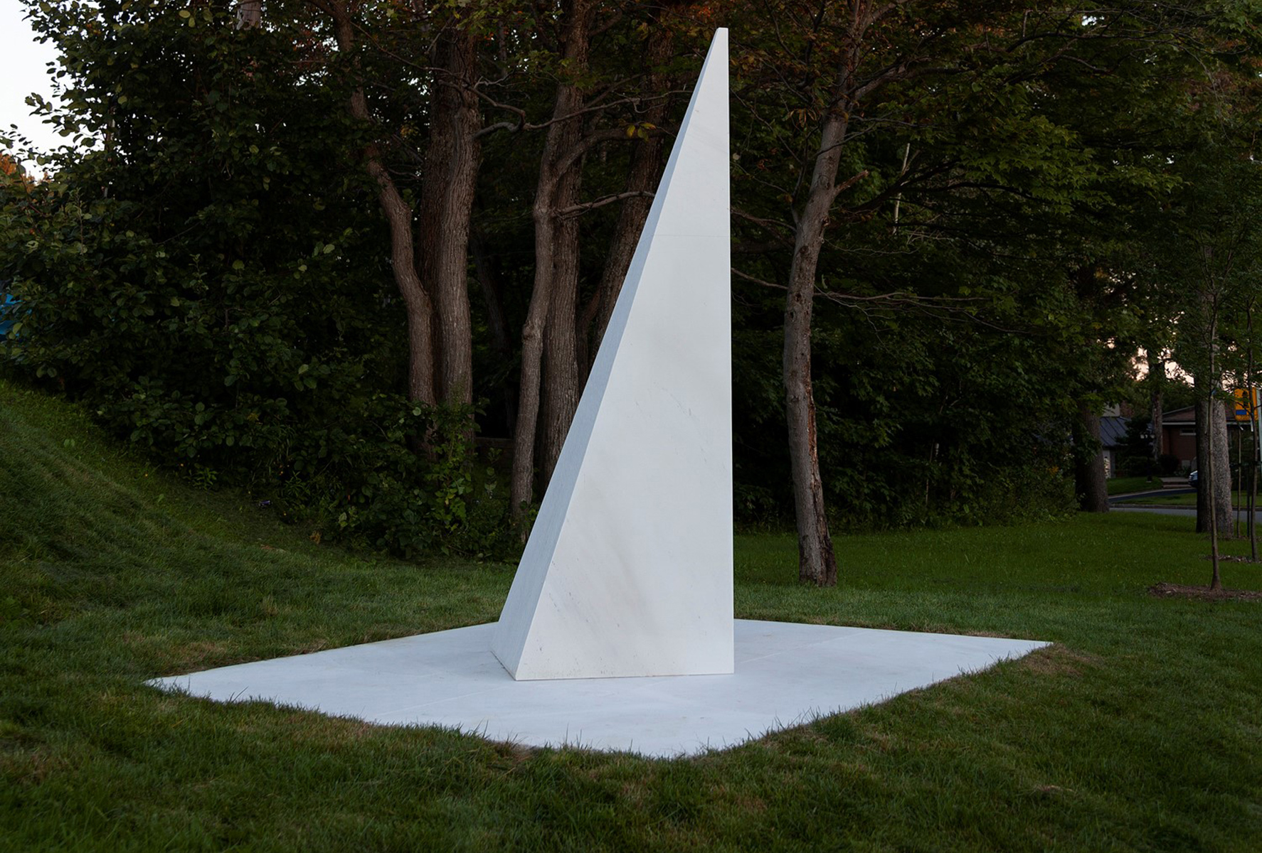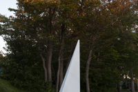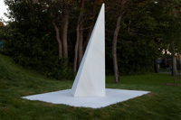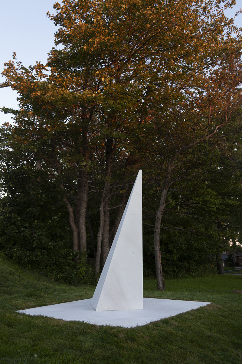 Posé sur une surface de marbre blanc, qu’il partage avec le visiteur, le monument s’élève, insaisissable, vers l’immensité. Alors que la couleur des arbres et la lumière retentissent sur le marbre, teintant légèrement sa blancheur, on oublie la taille imposante de l’œuvre pour s’ouvrir en douceur aux subtilités de l’environnement.