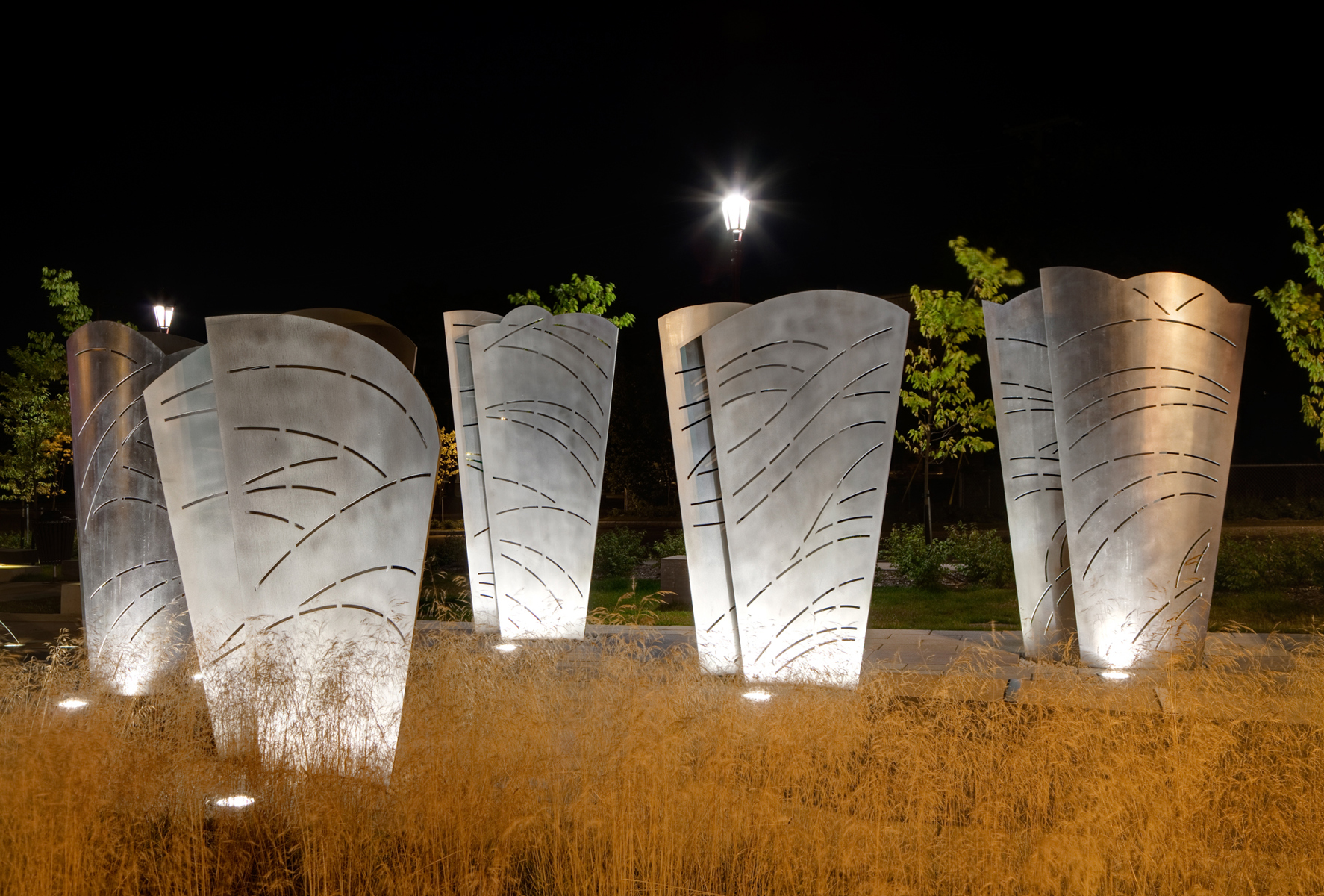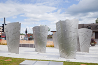 L’œuvre-fontaine qui anime la place du Vieux-Bourg a été réalisée à l’occasion du 375e anniversaire de Beauport. L’ensemble sculptural comprend cinq structures en acier aux formes courbes, entre lesquelles jaillissent par intermittence des gerbes d’eau. Les structures sont ornées de motifs ajourés suggérant le mouvement ondulatoire des vagues. L’artiste a voulu ainsi rappeler l’importance qu’ont eue les cours d’eau dans l’histoire de Beauport.