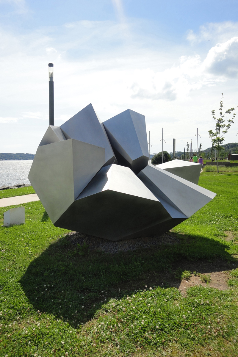 « La configuration de la sculpture, l’ingéniosité de la géométrie, les multiples angles qui se croisent, dégagent un esprit de dynamisme et de force. De par sa forme, ma sculpture affirme des forces qui sont aussi bien centrifuges que centripètes. La coexistence de ces deux forces contradictoires sous-tend deux idées maîtresses : projeter vers l’avenir tout en rassemblant le passé.