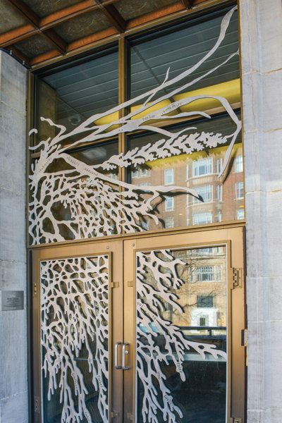 Le sculpteur s’est inspiré de l’orme, cet arbre majestueux omniprésent dans les oeuvres des artistes Marc-Aurèle Fortin et Armand Vaillancourt. Sur certaines des branches sont gravés les mots « Au coeur des feuilles l’idée de l’arbre », extraits d’un poème de Gaston Miron.