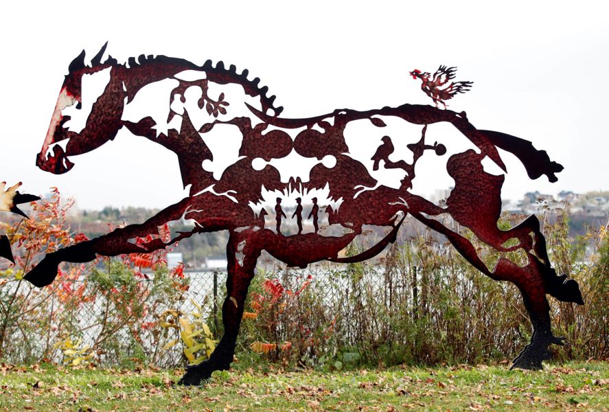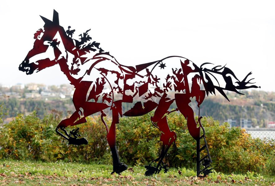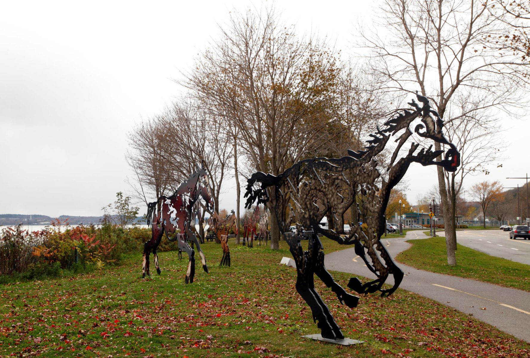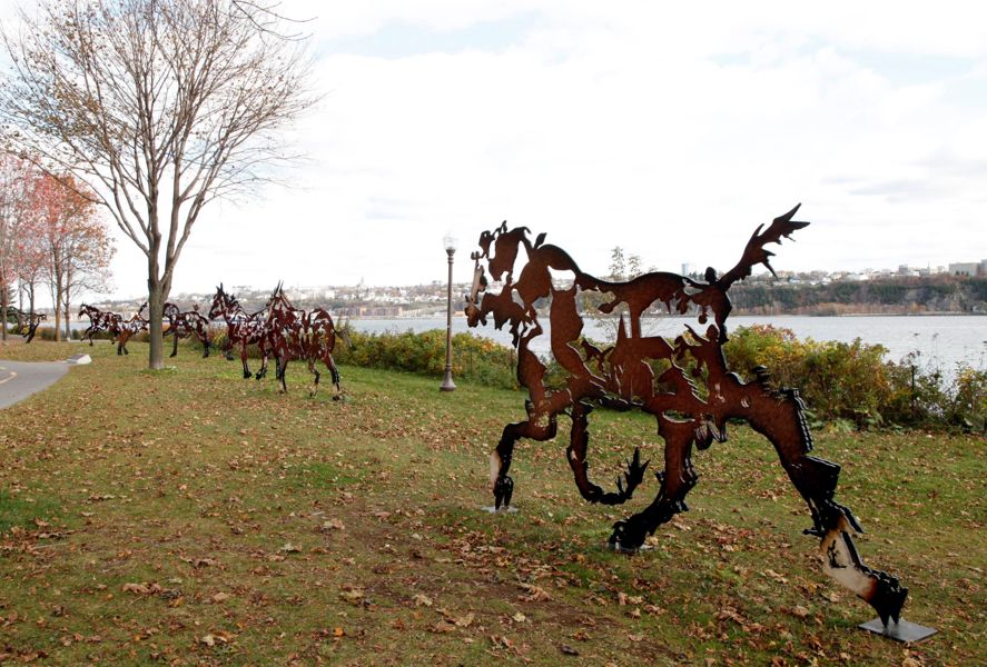 Huit chevaux en acier semblent galoper le long du fleuve et du boulevard Champlain. Leur silhouette est dynamisée par des motifs ajourés reproduisant des scènes et des personnages de l’histoire du pays. Une plaque commémorative souligne l’importance qu’a eue le cheval dans le développement de la Nouvelle-France et de l’Ouest canadien. L’œuvre est un don de la Ville de Calgary et du Calgary Stampede.