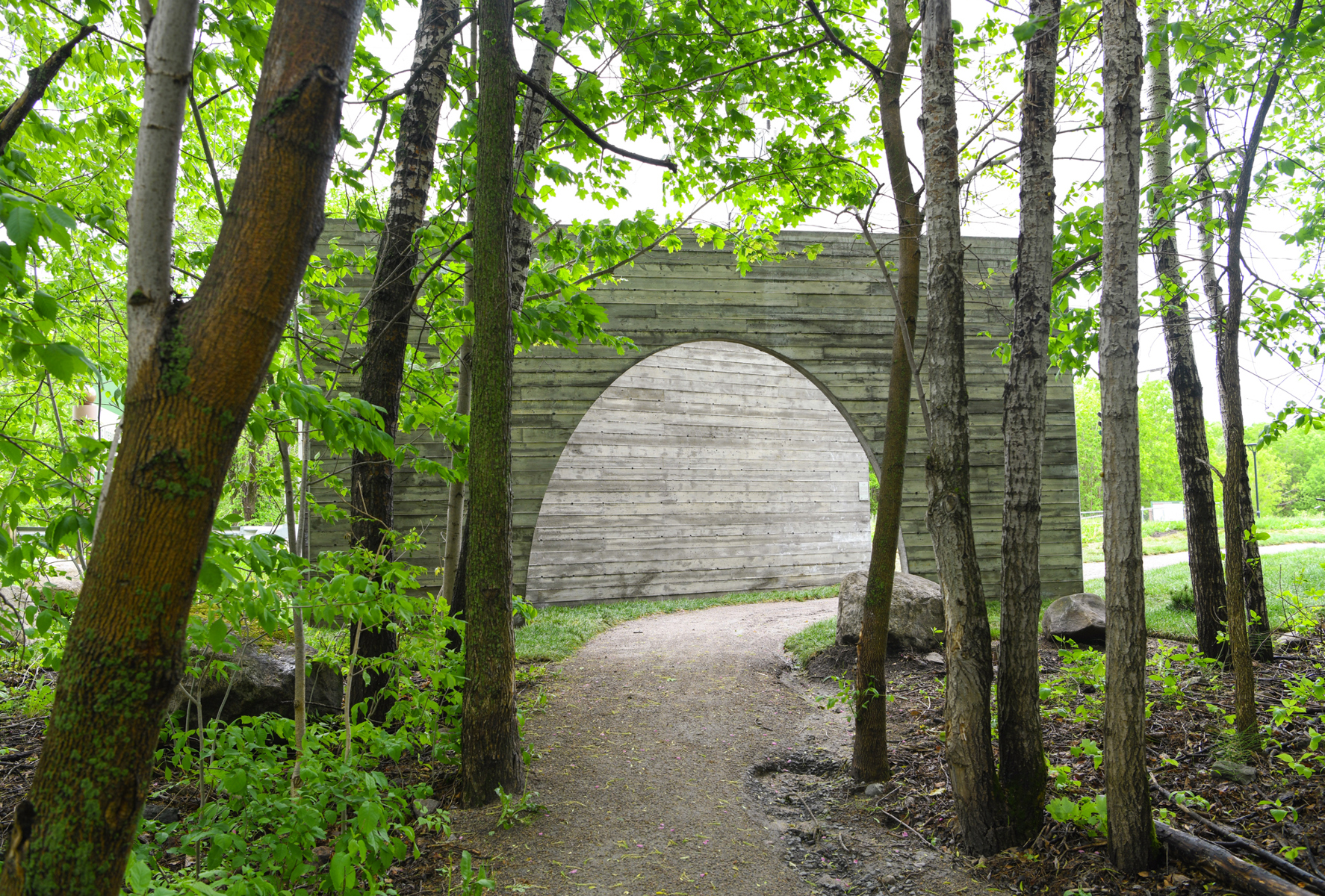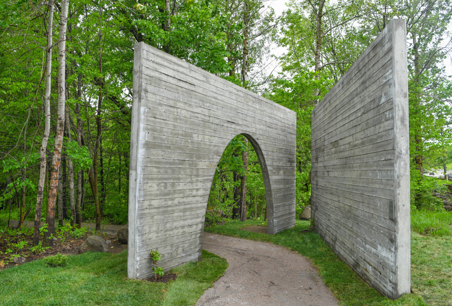 Tel un livre entrouvert, cette œuvre est une invitation à déambuler dans un nouveau paysage, qu’il soit réel ou imaginaire. Elle offre aux promeneurs une transition entre la zone urbaine et l’espace naturel du parc linéaire de la Rivière-Saint-Charles, qu’on aperçoit par l’embrasure et le large portail en forme d’arche.