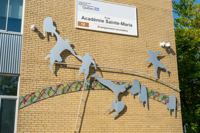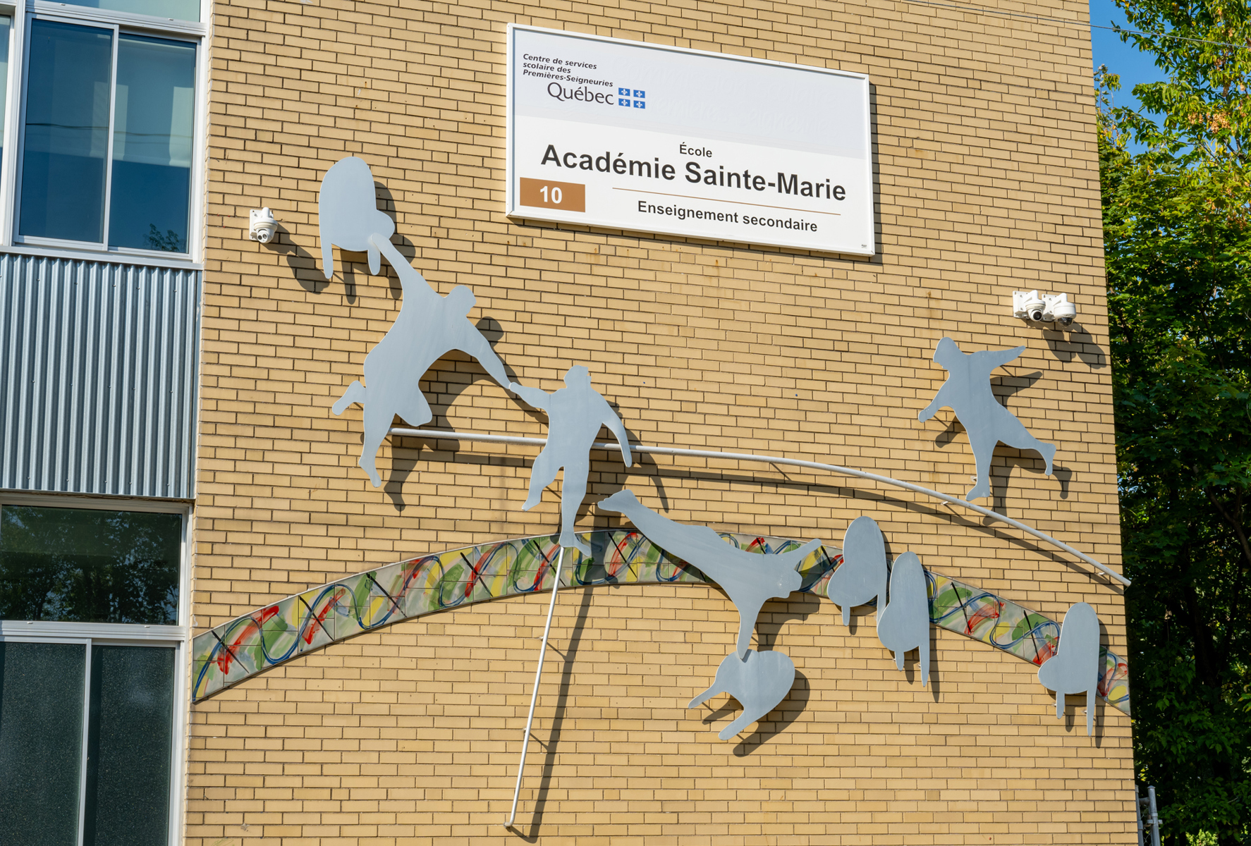 L'œuvre, située sur la façade nord-est de l'édifice, a été réalisée dans le cadre de la Politique d'intégration des arts à l'architecture et à l'environnement.