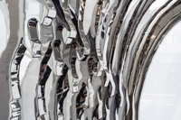Un ruissellement lumineux attire le regard. Cet écoulement coloré traduit en lumière la vitesse des courants fluviaux. Transposés en une boucle de trois minutes, les débits d’écoulement de chaque fleuve sont calculés en fonction de données réelles s’échelonnant sur trois années.