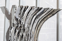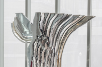 Cette sculpture présente la rencontre du fleuve Saint-Laurent (Québec) et de la Meuse (Namur). Façonnée de manière à former un « Y » aux allures majestueuses, l’œuvre présente, à l’avant et à l’arrière, les tracés originaux des cours d’eau liés par des strates intermédiaires.