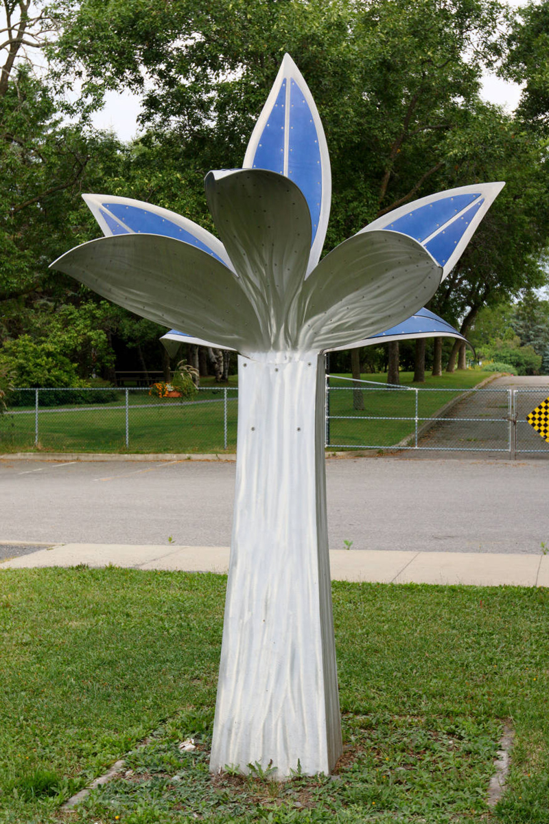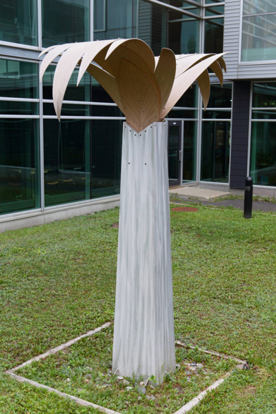 Les trois autres formes, situées dans le jardin, représentent trois arbres imaginaires implantés en alternance avec de véritables féviers. Le premier arbre représente le laurier et plus généralement les fines herbes, la nourriture bien assaisonnée et tous les plaisirs rattachés au goût. Le second arbre représente un croisement entre les ailes d'un papillon et les feuilles rendues à maturité. C'est un rappel de la fin des récoltes et de la mise au grenier en prévision de leur prochaine transformation. Le troisième arbre représente le blé, l'alfafa et les graminées. Son feuillage très fourni est le signe de l'abondance.