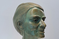 Gabrielle Roy est d’une sérénité triomphante au tournant de ses 70 ans. Un cadeau que l’artiste-sculpteur aura voulu s’offrir en hommage à l’œuvre de l’écrivaine venue de lointaines prairies, dans laquelle il puisa inspiration. Faut-il voir dans ce regard énigmatique, ce visage nostalgique, l’éternel déchirement entre affections et solidarités prégnantes, ou encore l’irrésistible appel du large qui, dès sa prime jeunesse, apparaîtra comme sa souveraine destinée?