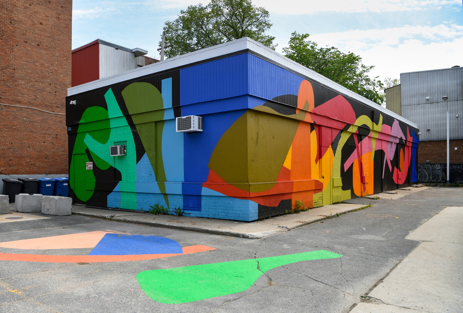 Cette murale, située sur le garage désaffecté du quartier Montcalm, a été réalisée en 2021 pour embellir le quartier avant que le bâtiment ne soit démoli en 2023.