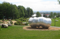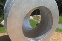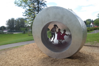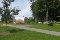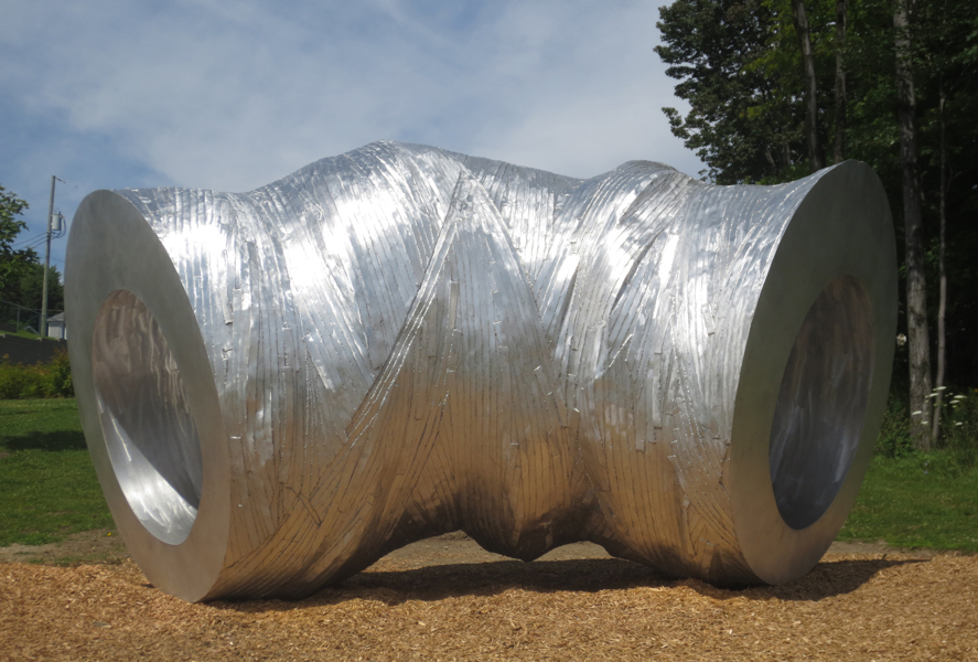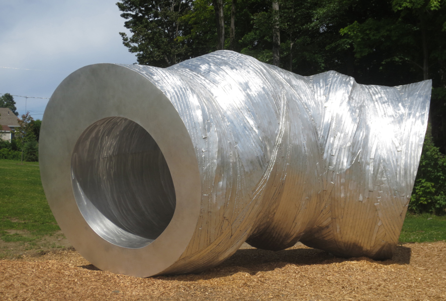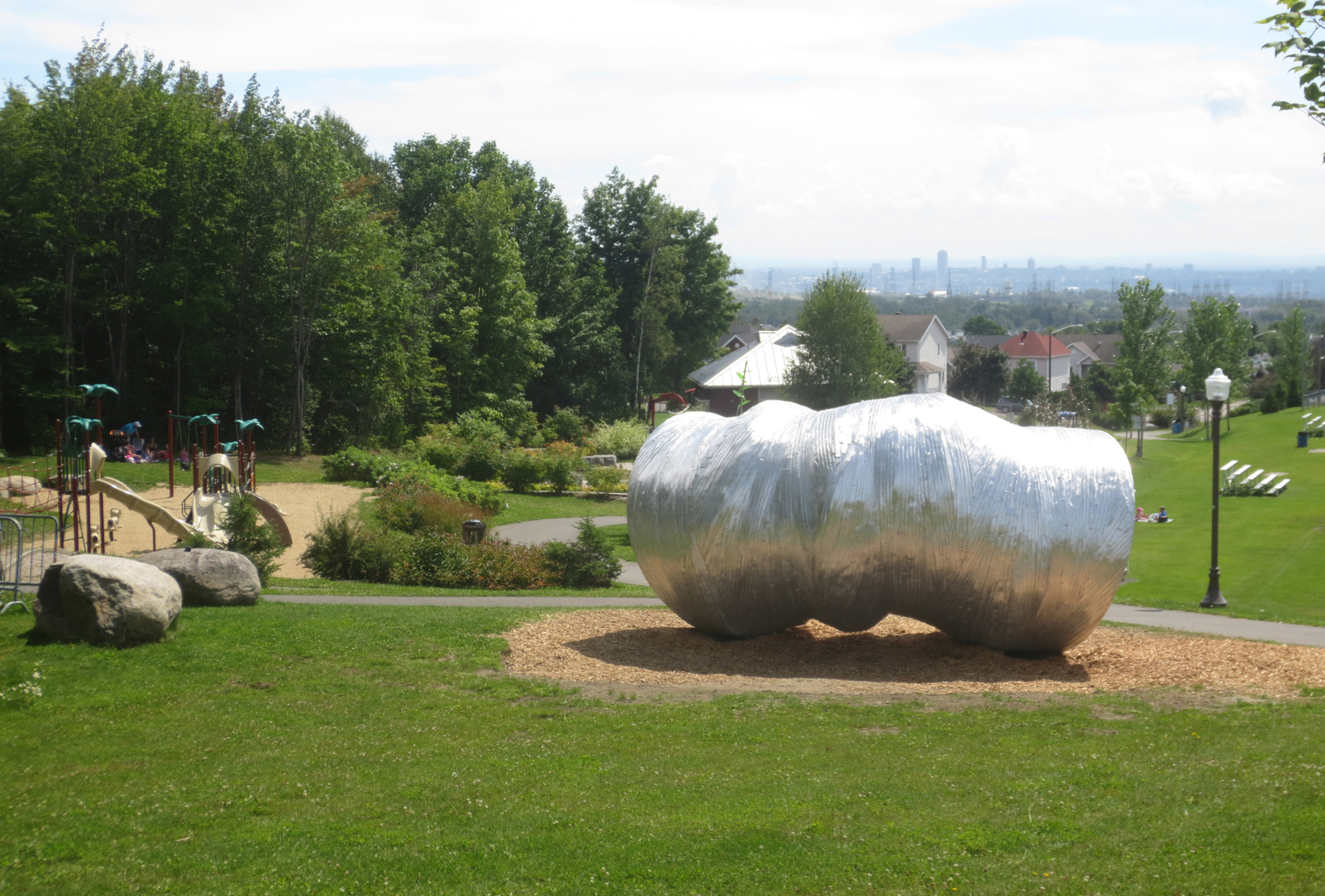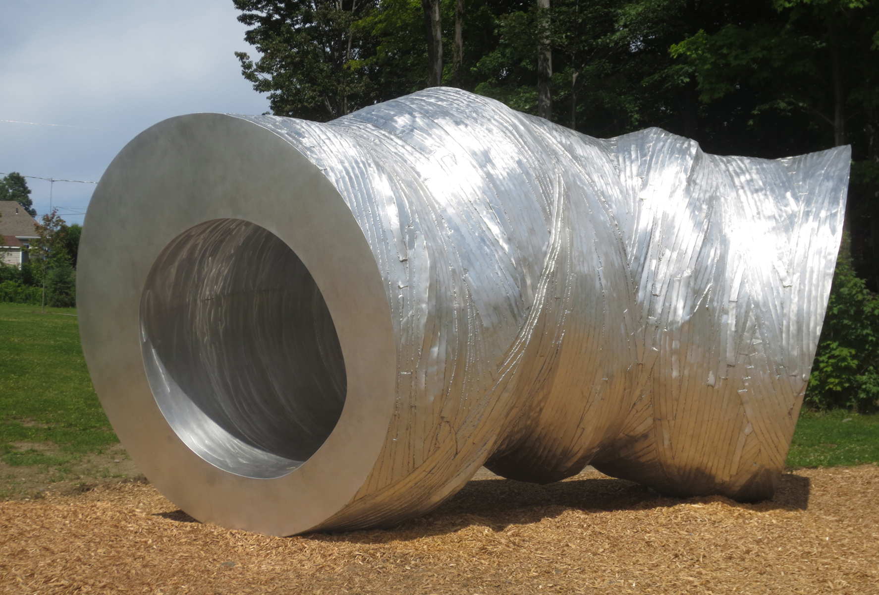 À la fois installation ludique et œuvre d’art, cette sculpture est le fruit d’une collaboration exceptionnelle entre un artiste et un groupe d’enfants de quatre et cinq ans de l’Atelier communautaire Saint-Émile. La forme de l’œuvre, inspirée de l’imaginaire des petits, invite à s’y glisser comme dans un tunnel. L’artiste l’a revêtue de lattes d’aluminium qui multiplient les jeux de texture et de lumière. Les enfants sont fiers d’y accourir en s’écriant : « Hey papa, t’as-tu vu notre stucpture ? »