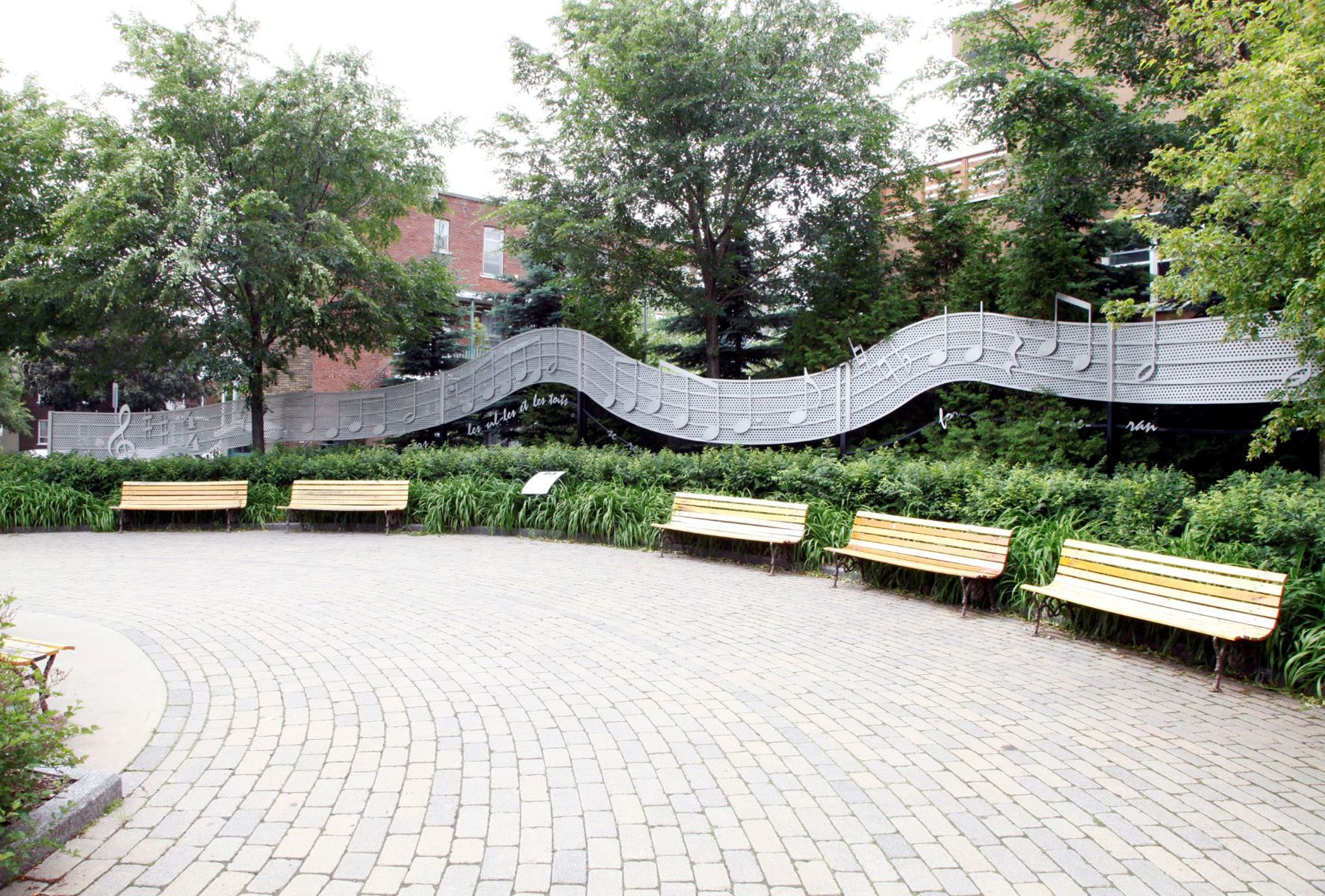 Sylvain Lelièvre (1943-2002) a chanté avec émotion les charmes de Limoilou, son quartier natal. Cette portée musicale en aluminium serpente dans le parc qui porte son nom. Sous les notes sont reproduits les vers finaux de sa chanson Toi l’ami : « Que par-dessus les mers, les villes et les toits / Se rejoignent nos mains à force d’espérance. » L’œuvre est la création commune d’un sculpteur et d’un architecte paysagiste.