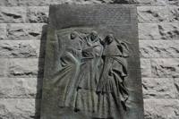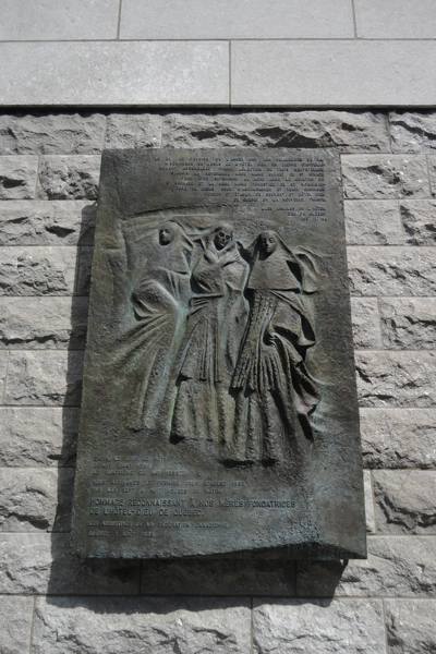 Apposé sur le mur extérieur du monastère, ce bas-relief commémore l’arrivée des trois premières Augustines en Nouvelle-France, le 1er août 1639. L’année 1989 marquait le 350e anniversaire de cet événement.