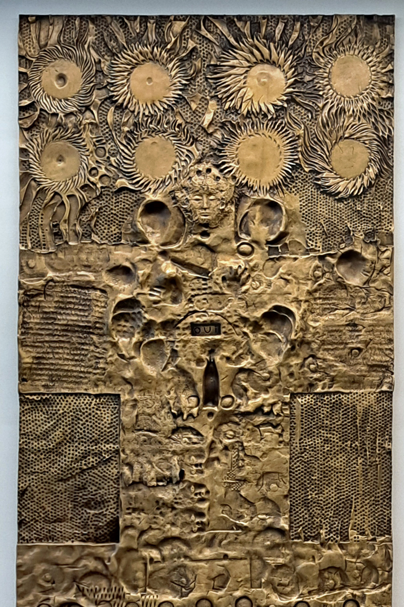 Ce bas-relief est empreint d’une spiritualité propre à la dernière période de création de Jordi Bonet. L’Homme Soleil, réalisé peu avant son décès, présente un personnage dont le corps semble s’amalgamer à un arbre de vie. Au-dessus de son visage aux yeux paisiblement fermés, huit tournesols brillent comme des soleils. En signe d’acceptation, le mot oui est encadré d’un rectangle placé sous deux mains ouvertes.