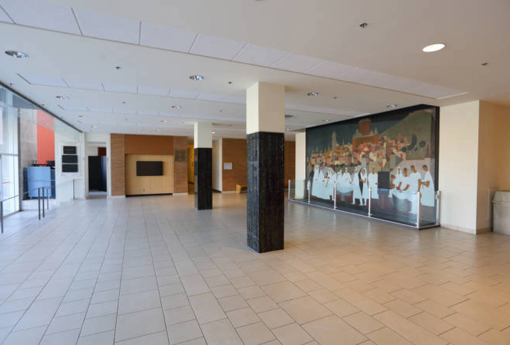 La peinture illustre l'histoire de la Médecine à Québec. En arrière plan est représentée le Vieux-Québec, foyer d'origine de la Faculté de médecine de l'Université Laval. Au premier plan sont représentés dix-neuf personnages rattachés au monde médical : religieuses, chirurgiens, infirmières, professeurs, étudiants, internes et patients. L'œuvre a été restaurée en 2011 et réinstallée à son emplacement original.