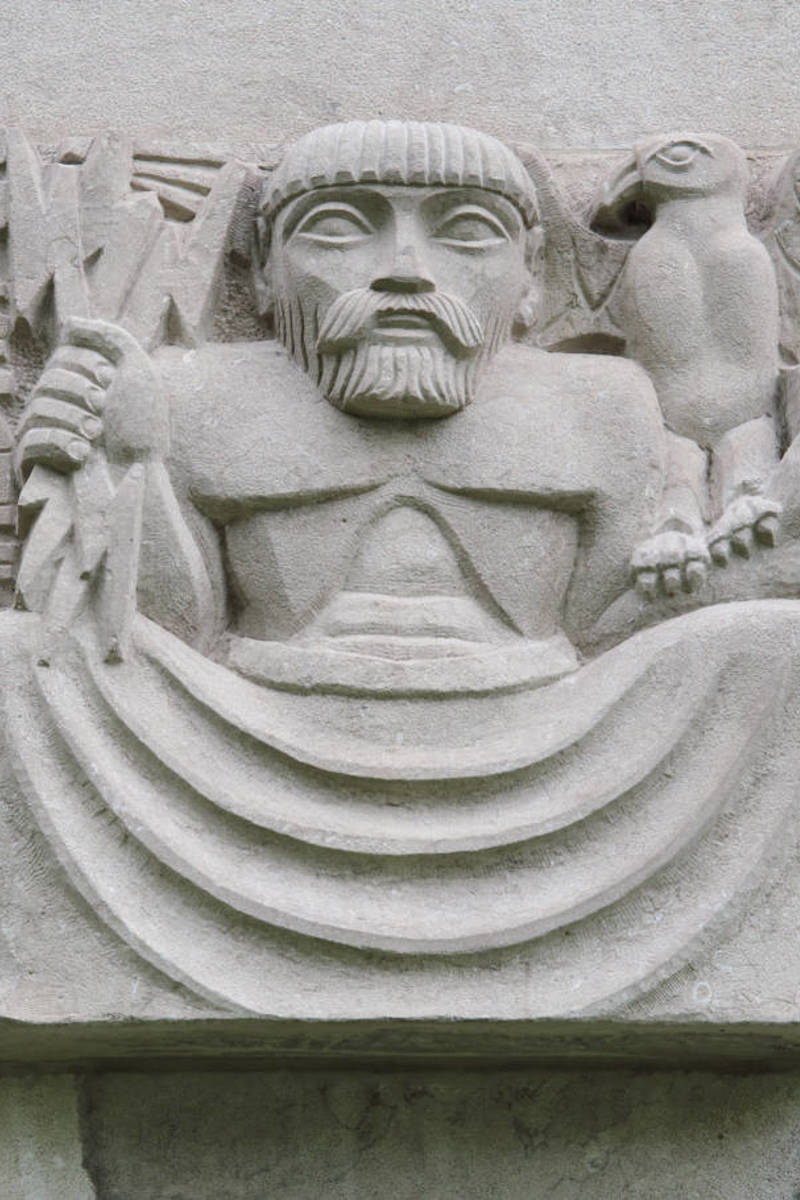 La sculpture représente Zeus, le roi des dieux grecs, accompagné de trois de ses attributs. De sa main droite, il tient le foudre, symbole de la puissance. Il s'agit d'une arme fabriquée par les Cyclopes Argès, Brontès et Stéropès qui y intégrèrent respectivement la foudre, le tonnerre et l'éclair. De sa main gauche, Zeus tient un sceptre qui, associé à l'aigle qui s'agrippe à son bras, est le symbole de l'inviolabilité, c'est-à-dire de l'immunité diplomatique.