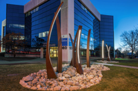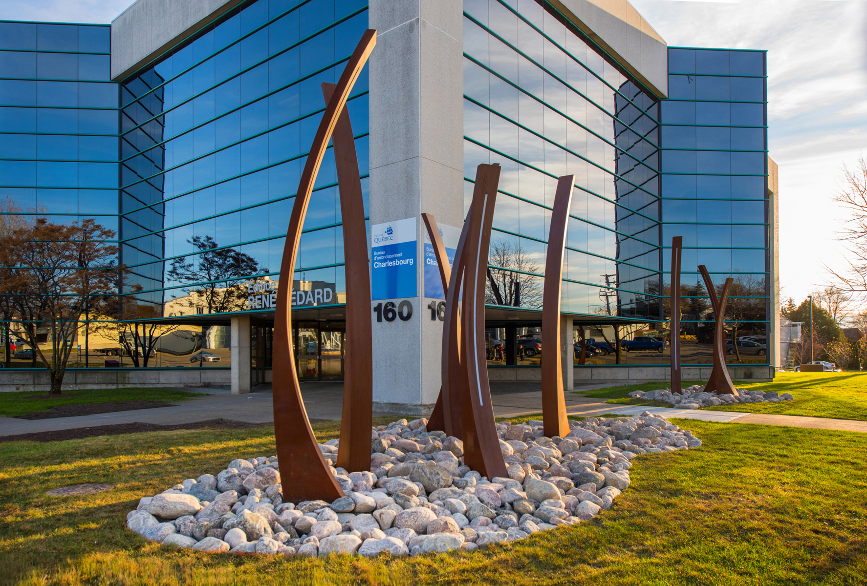 À la tombée du jour, chaque sculpture est éclairée de l’intérieur, reflet de la chaleur humaine qui anime les bénévoles. L’ensemble compose un parcours que l’on peut emprunter pour accéder au bureau d’arrondissement, lieu d’accueil symbolique de la collectivité.