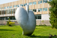 L'œuvre, qui évoque à la fois la forme d'un cœur et celle d'une feuille, a d'abord été installée au Jardin zoologique du Québec. Elle a été déplacée près de la rivière, dans le parc du Moulin, en 2008.