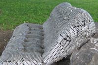 Ce canapé bien coussiné invite le passant à prendre un moment de repos. Attention, il est moins moelleux qu'il le semble de loin! Son revêtement se compose de milliers d'écrous de métal – un rappel des industries qui bordaient jadis ce cours d'eau. L'œuvre explore le jeu des apparences. Avec humour, elle rend aussi hommage à l'anatomie humaine, son titre signifiant « qui a de belles fesses ».