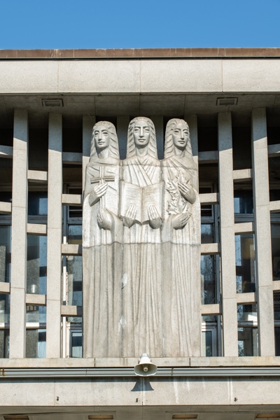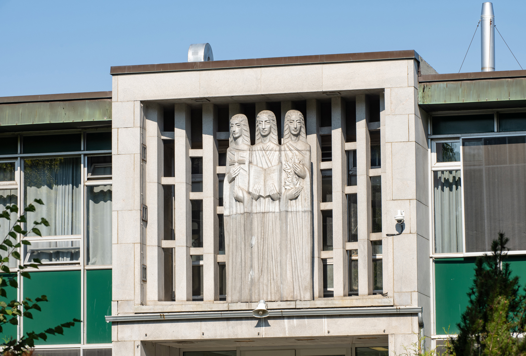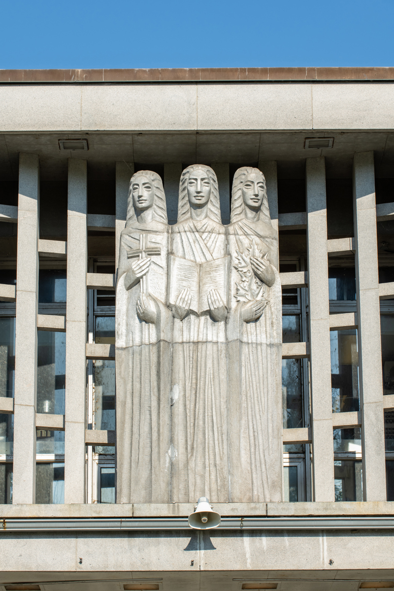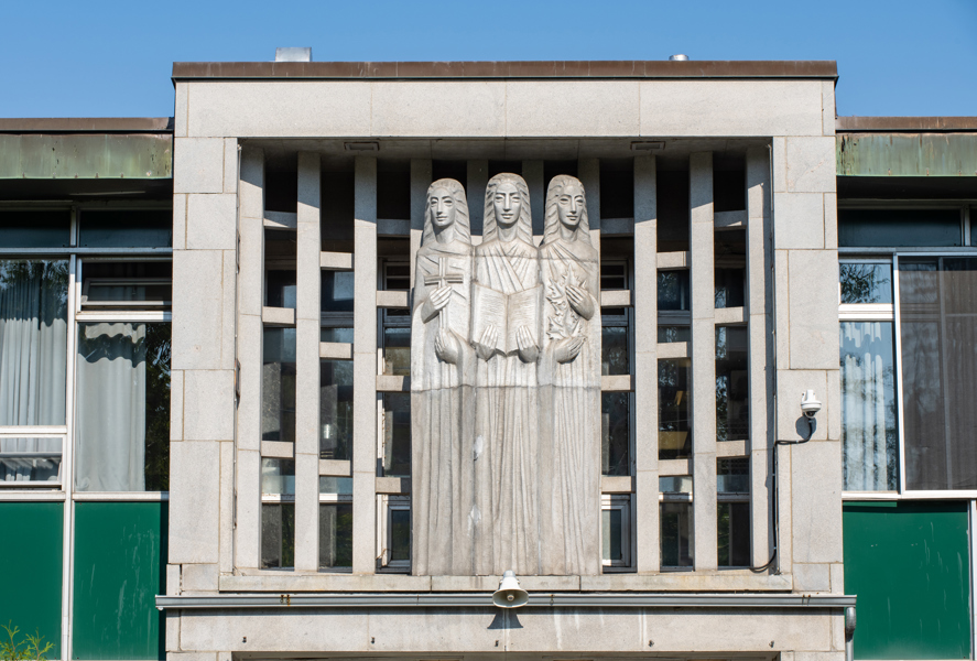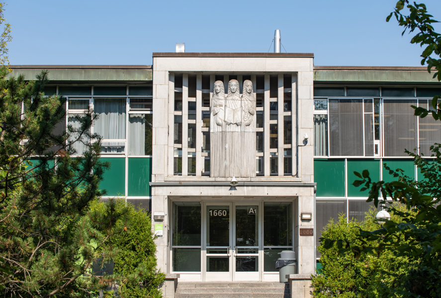 Trois personnages tiennent dans leurs mains une feuille d’érable, un livre ouvert et une croix, emblèmes respectifs de la Patrie, de la Connaissance et de la Foi. L’œuvre a été dévoilée lors de l’inauguration de l’École normale Laval, vouée à la formation des maîtres jusqu’en 1970 et devenue aujourd’hui un pavillon du cégep Garneau.