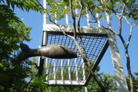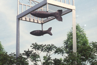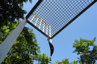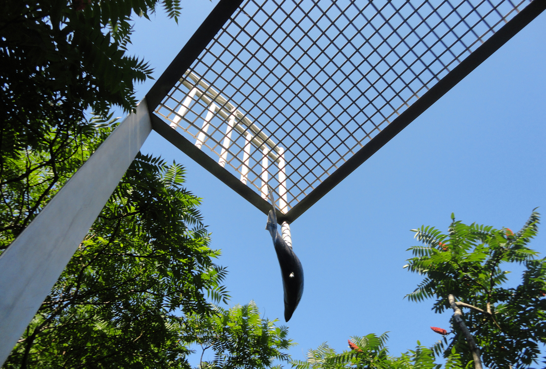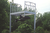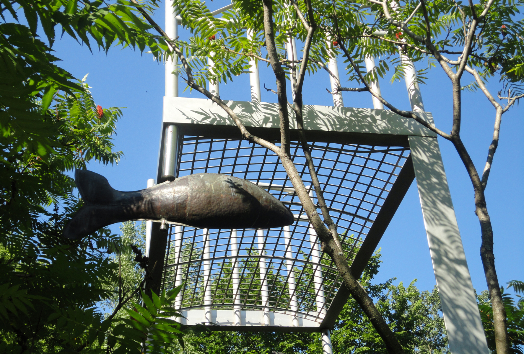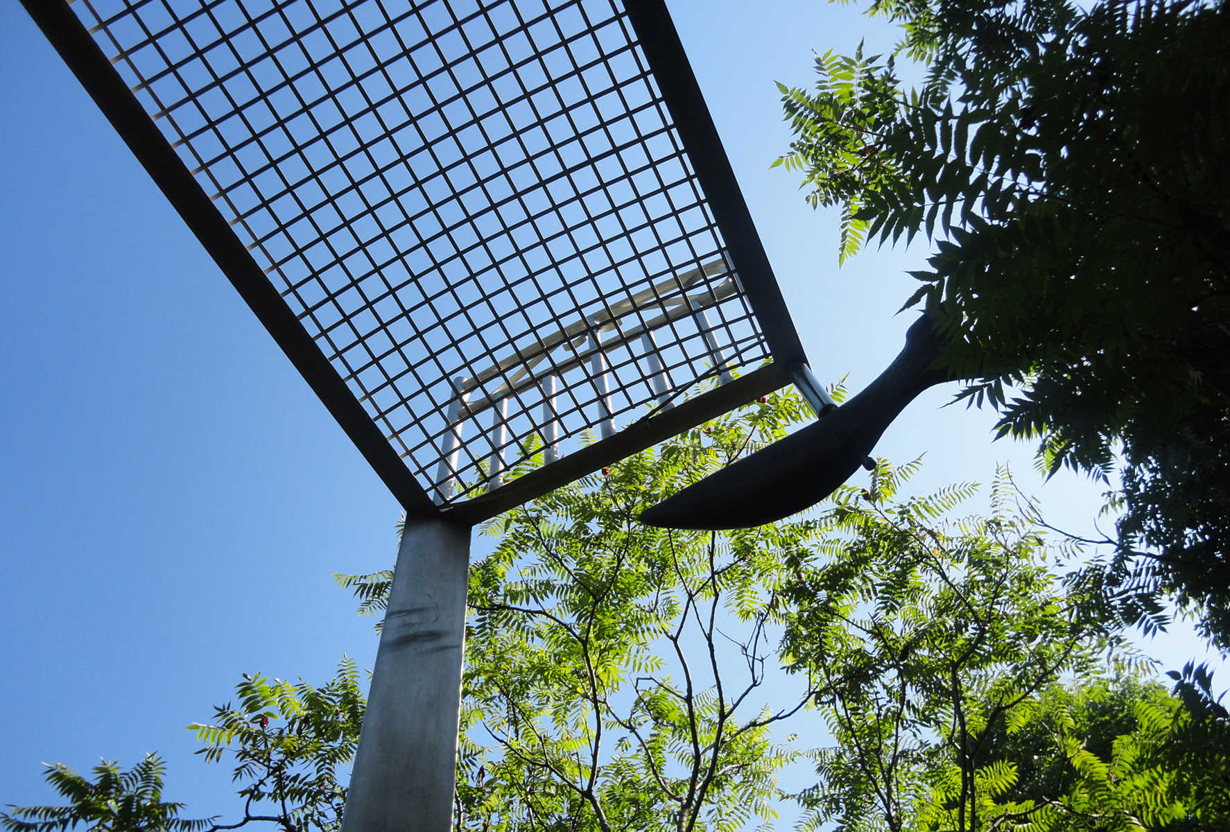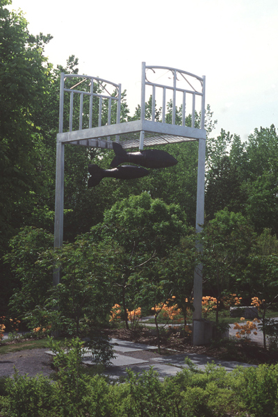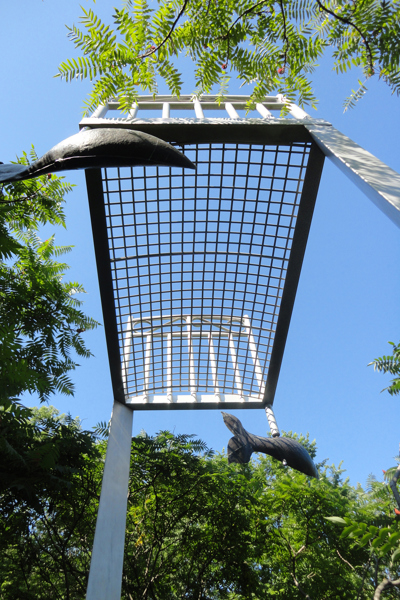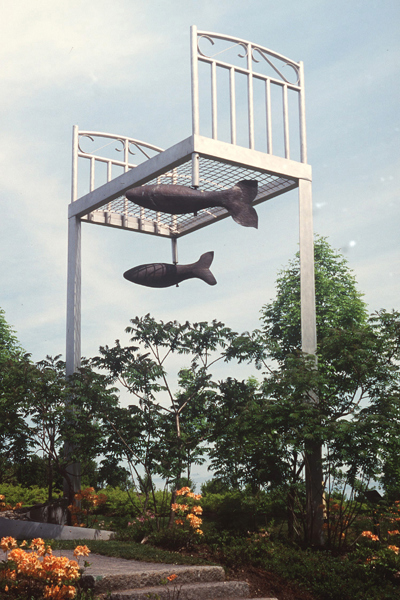 Perché à une telle hauteur, ce lit invite au rêve plus qu’au sommeil! Son pied et sa tête en métal rappellent les meubles en fer où ont dormi tant de Québécois autrefois. L’œuvre recrée l’intimité de la chambre à coucher au milieu du parc, instaurant ainsi un climat de détente. Par son titre, elle fait également référence au ruisseau du Moulin, qui sommeille tout près.