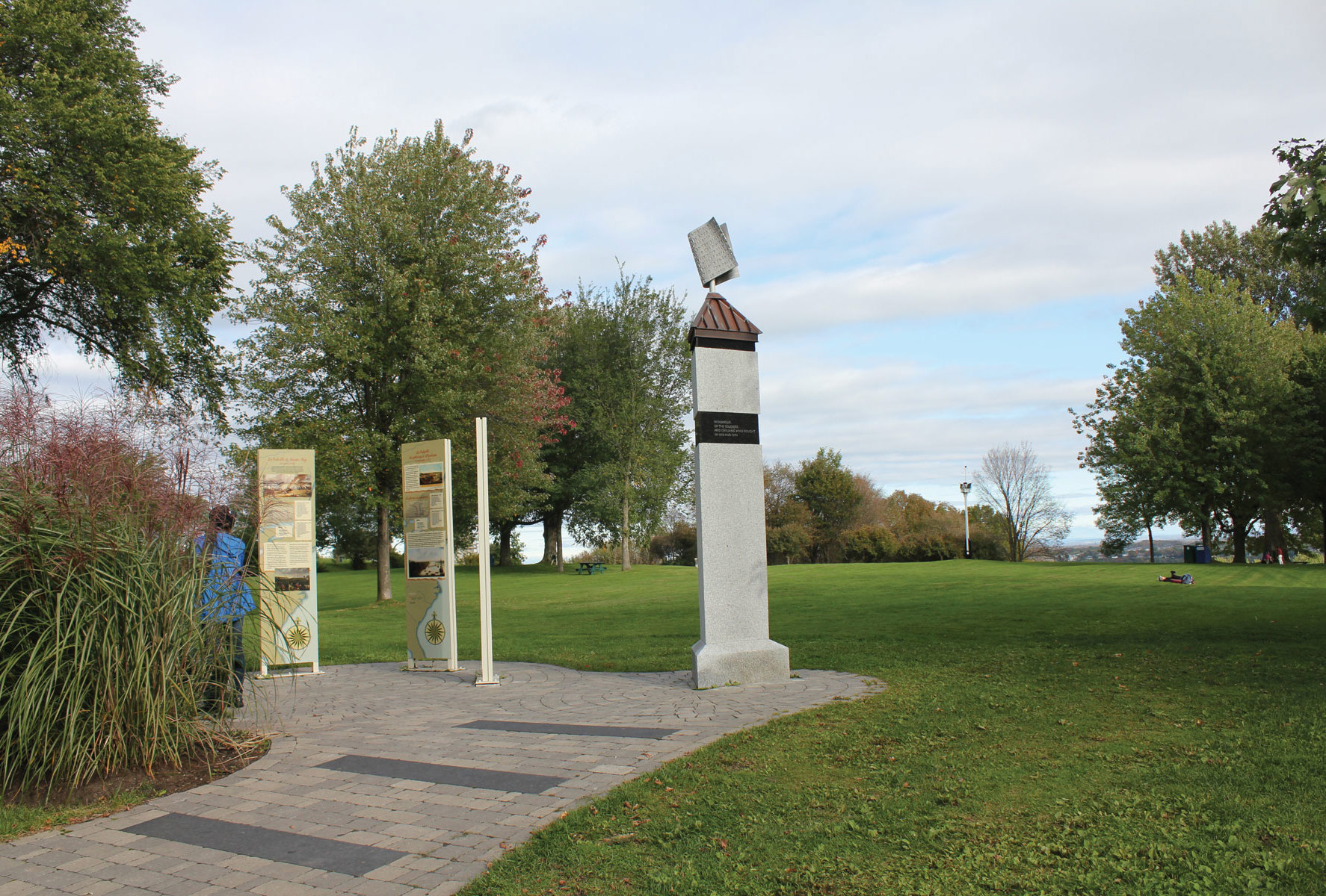 Le monument en forme de stèle est dédié aux combattants militaires et civils qui ont pris part aux batailles des Plaines d’Abraham et de Sainte-Foy, en 1759 et 1760.