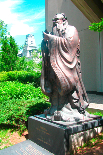 Né au 6e siècle avant notre ère, le philosophe Confucius a profondément influencé la civilisation chinoise. Le monument a été offert par le gouvernement de Shandong pour marquer les liens qui unissent cette province de Chine à la ville de Québec.