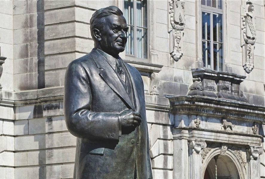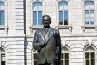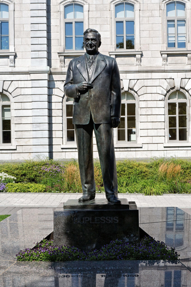 Premier ministre du Québec de 1936 à 1939 et de 1944 à 1959, Maurice Duplessis défendait avec vigueur l’autonomie de la province face au gouvernement fédéral. Il n’en était pas moins un homme politique controversé. Sa statue, livrée en 1960, a été entreposée pendant 17 ans avant d’être installée devant l’hôtel du Parlement.