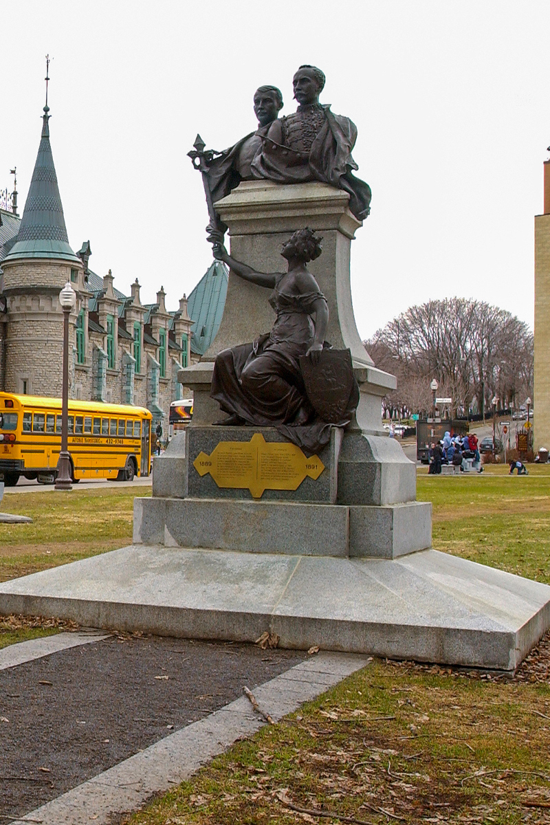 Le monument rend hommage au major Charles J. Short et au sergent George Wallick, qui ont péri en combattant le terrible incendie du quartier Saint-Sauveur en 1889. Un haut-relief incarne la ville de Québec sous les traits d’une femme tendant un drapeau vers les deux militaires en signe de reconnaissance.