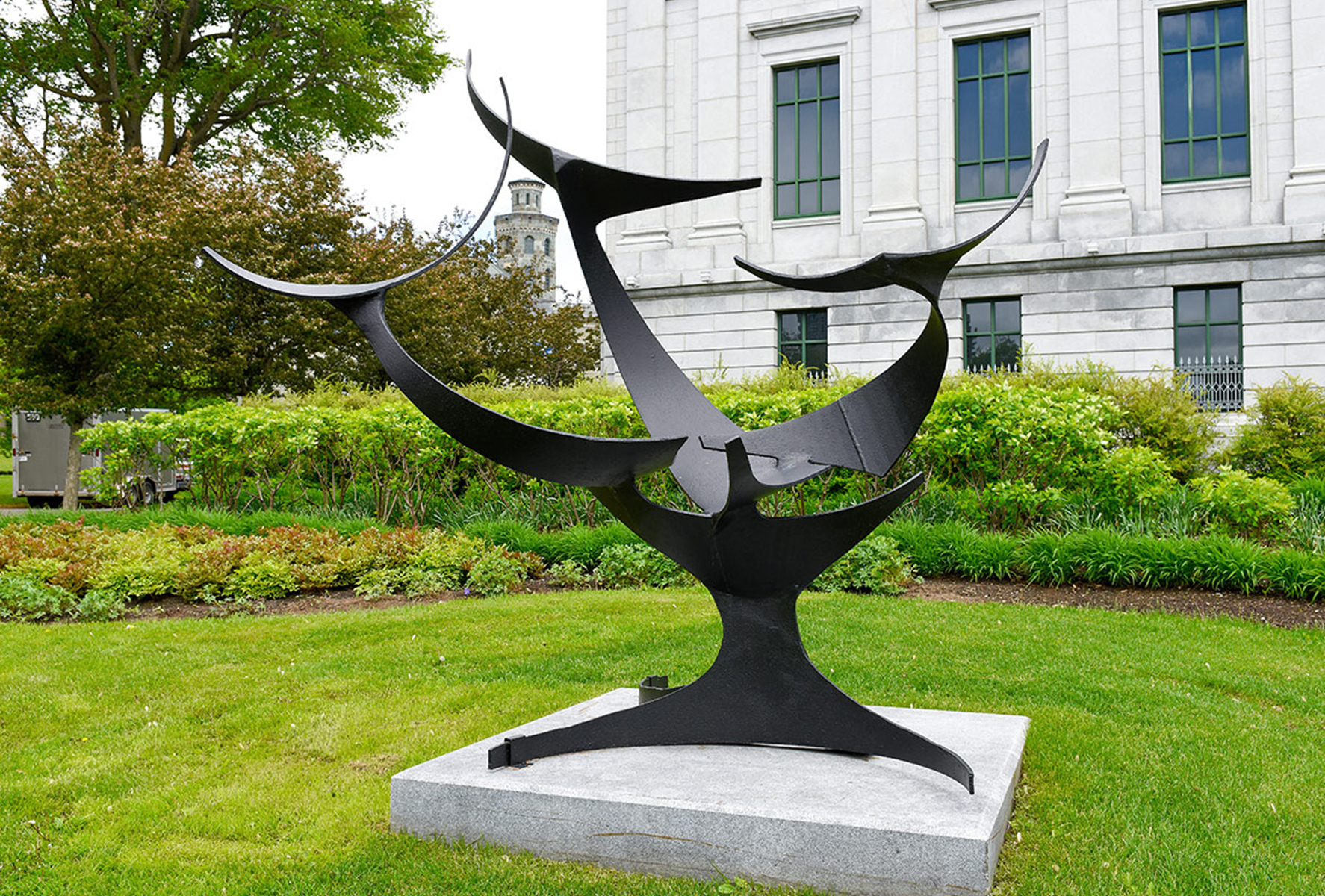 Les « branches » en demi-lune de cette sculpture arborescente semblent prêtes à capter la lumière, quelle qu’en soit la provenance.