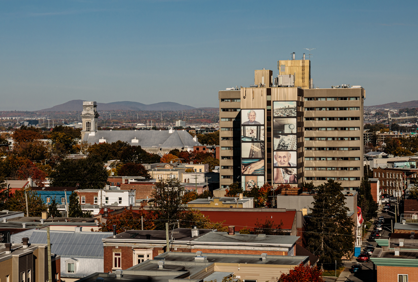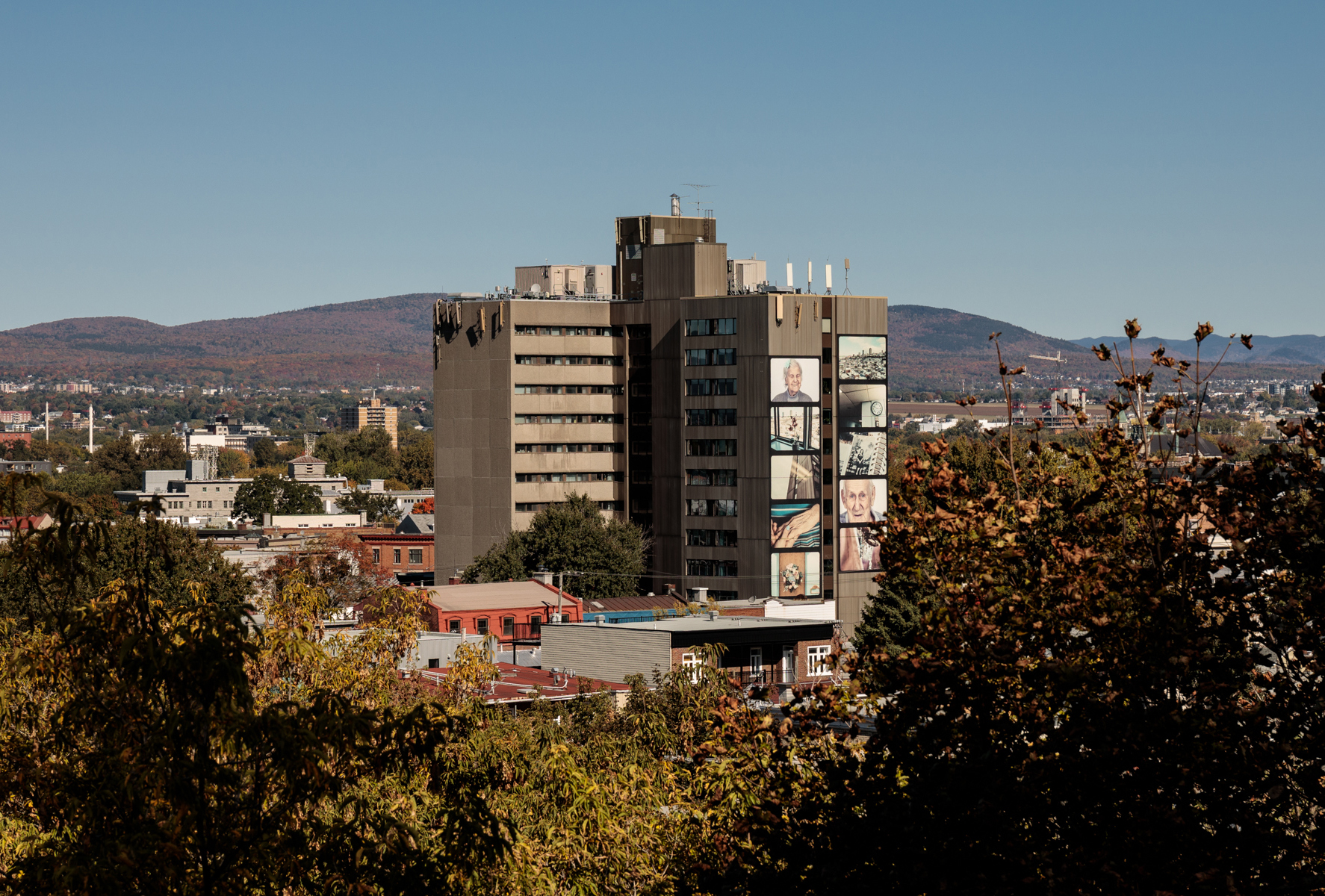 Cette murale photographique a été réalisée dans un contexte de médiation culturelle avec les occupants du CHSLD Notre-Dame-de-Lourdes. Elle contribue à dévoiler la vie qui se déroule à l'intérieur de cette tour visible de multiples points de vue dans la ville.