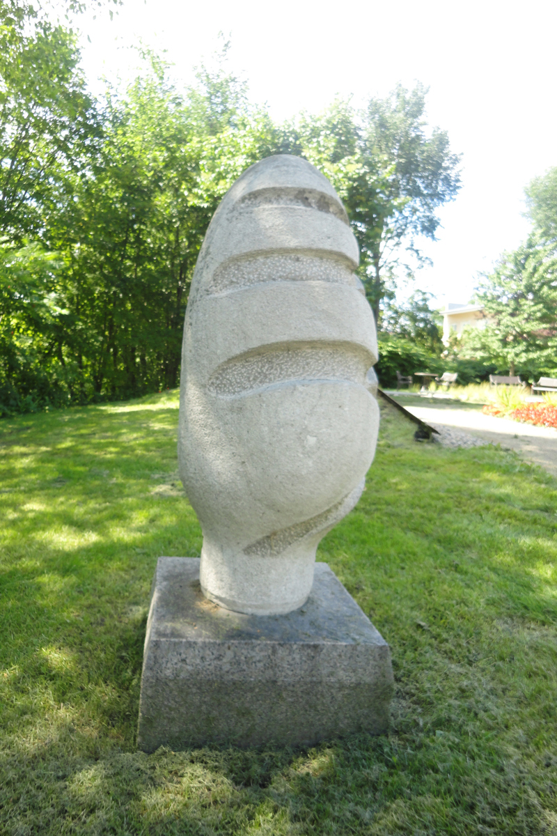 Cette sculpture en pierre calcaire a été taillée sur place, dans le parc de la Forge, situé en bordure de la côte de Cap-Rouge. Elle représente un cône de pin, l’un des emblèmes figurant sur les armoiries de l’ancienne ville de Cap-Rouge.