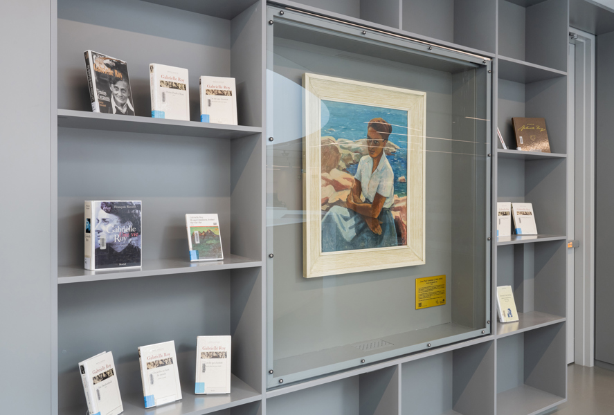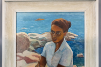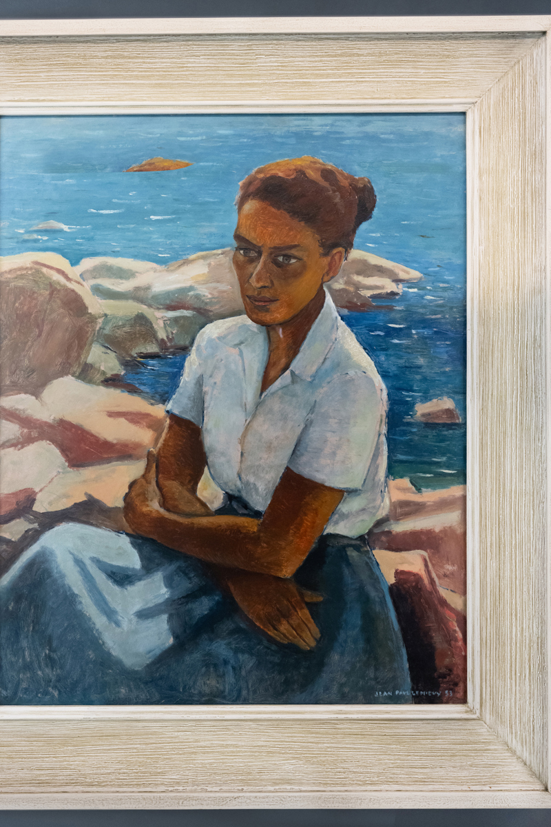 Ce portrait de l’écrivaine Gabrielle Roy a été peint à Port-au-Persil alors qu’une amitié grandissait entre elle et Jean Paul Lemieux. Posant sur les rochers charlevoisiens, la romancière franco-manitobaine affiche un regard pénétrant, perdu dans le bleu du fleuve Saint-Laurent.
