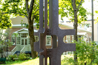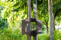 La sculpture est érigée près de l’aire de repos de la salle Pierre-Garon, à l’intersection de la 1e Avenue et du boulevard Louis-XIV.