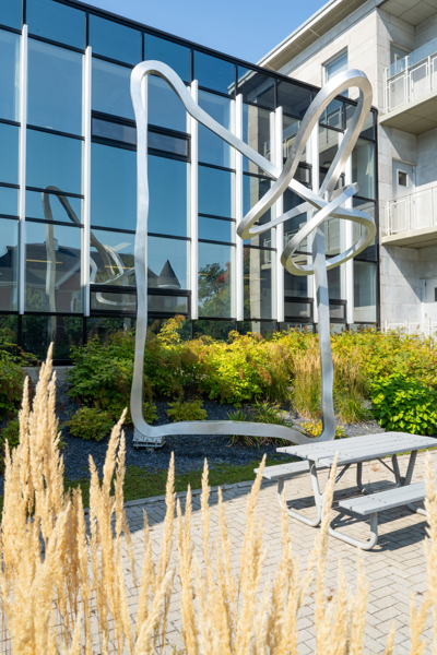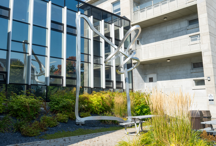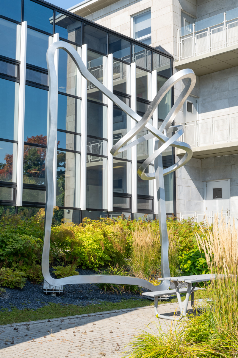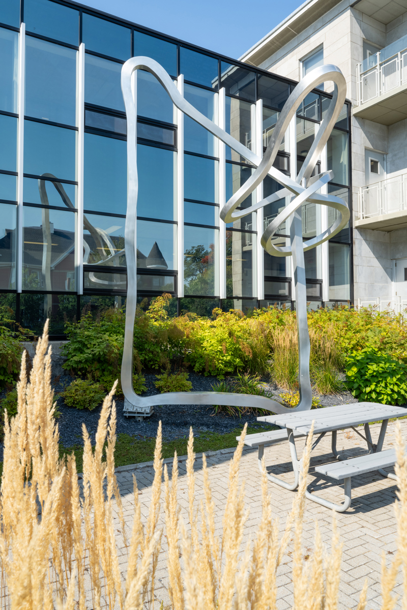 L'œuvre, réalisée dans le cadre de la Politique d’intégration des arts à l’architecture et à l’environnement, est située dans une petite aire de repos extérieure sur le terrain de l’IUCPQ.