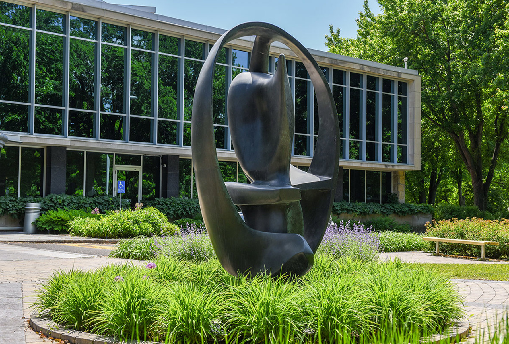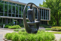 Recherche de la forme pure, cette sculpture présente un jeu de volumes, de lignes et de plans assemblés de façon à tirer de la matière, le bronze, le maximum de plasticité et de finesse.