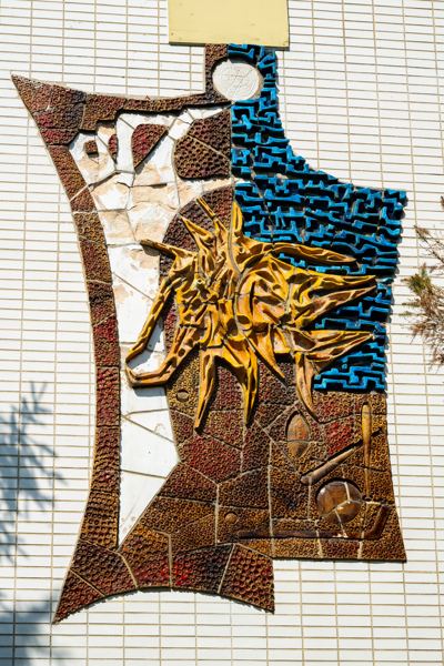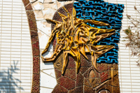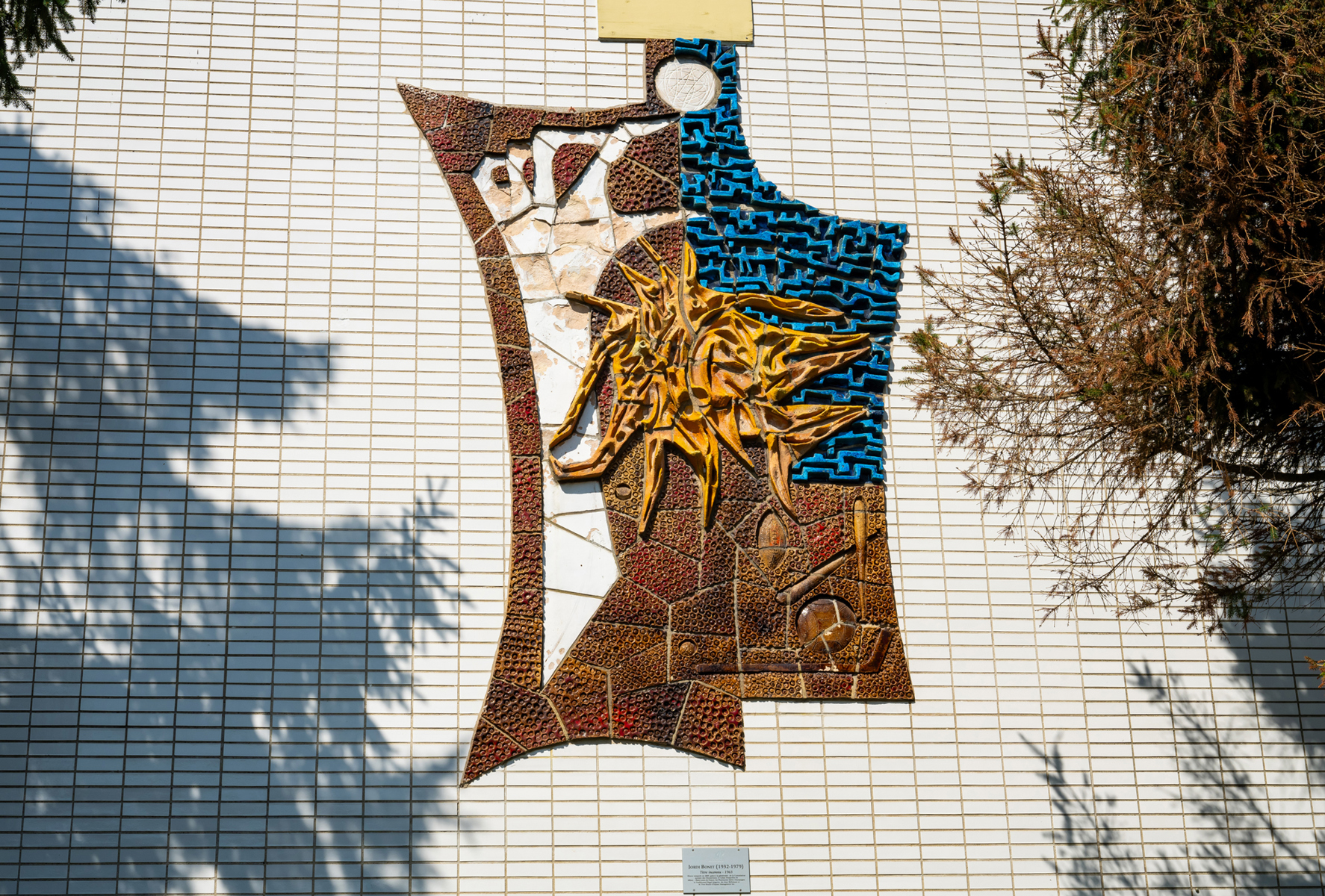 Cette œuvre murale de Jordi Bonet occupe le mur donnant sur la rue Sheppard de l’école Saint-Michel à Sillery.