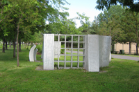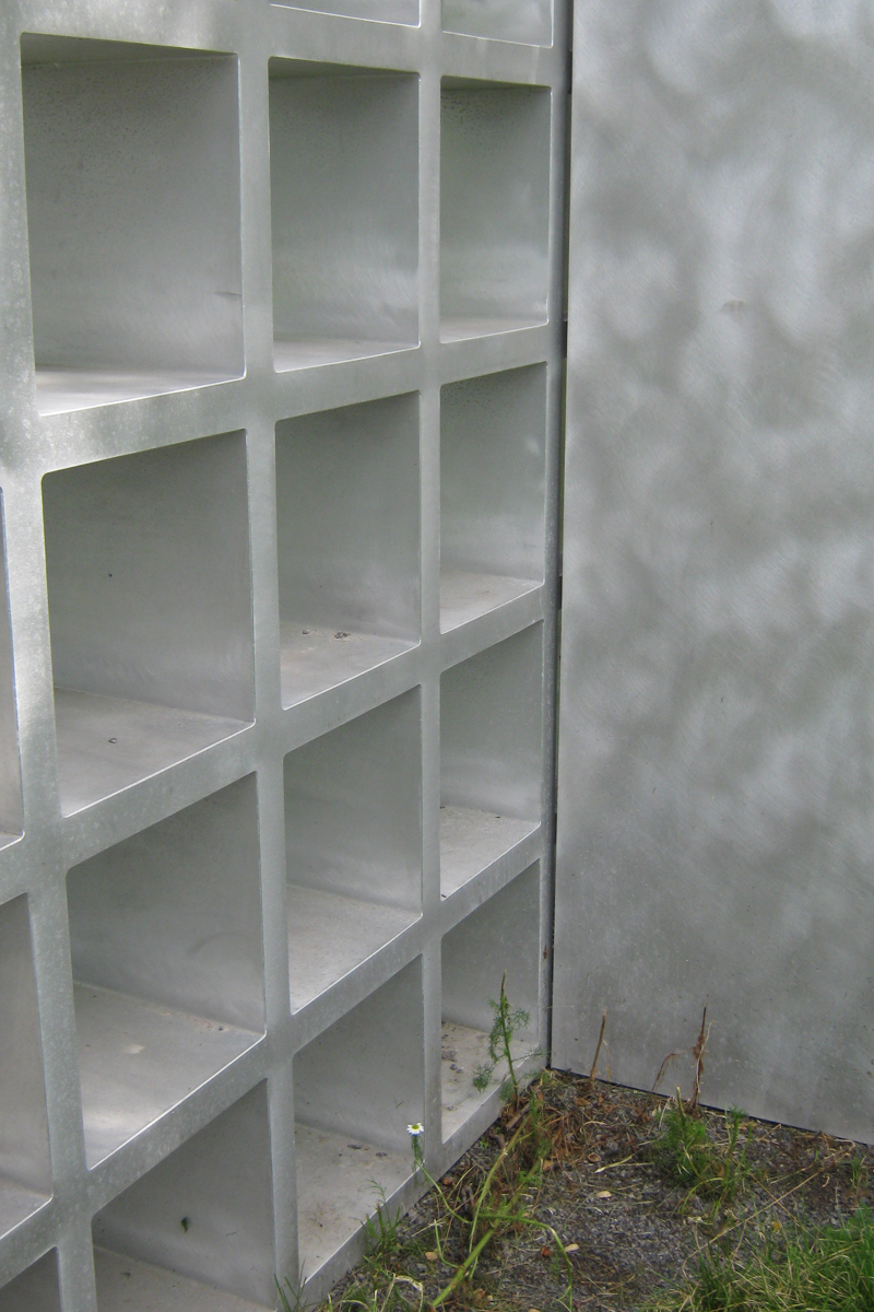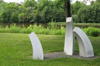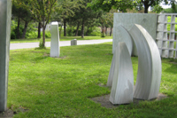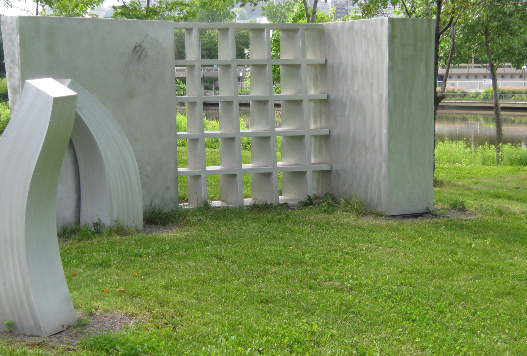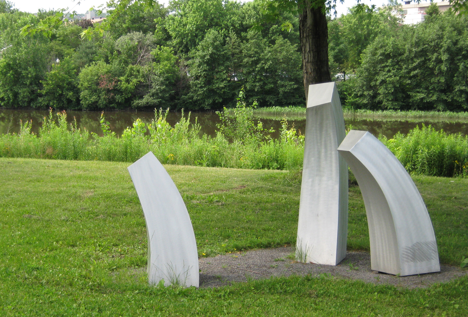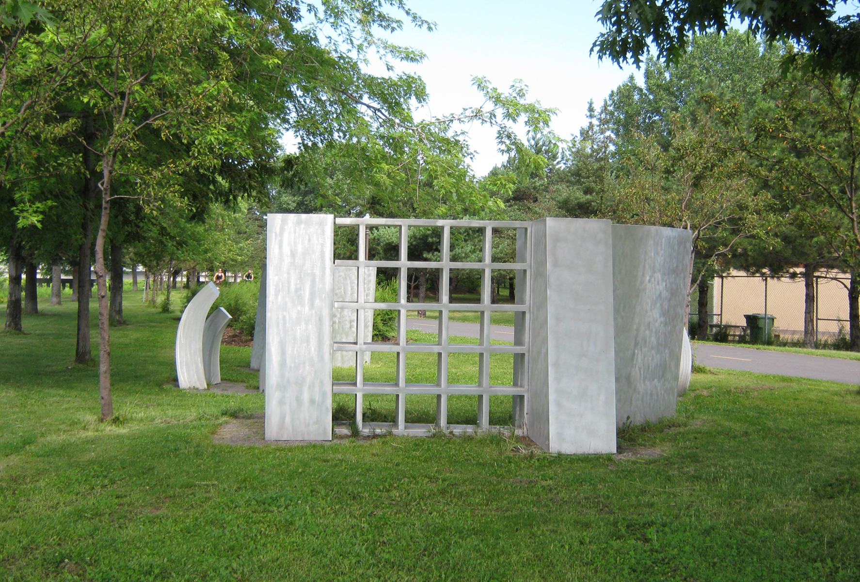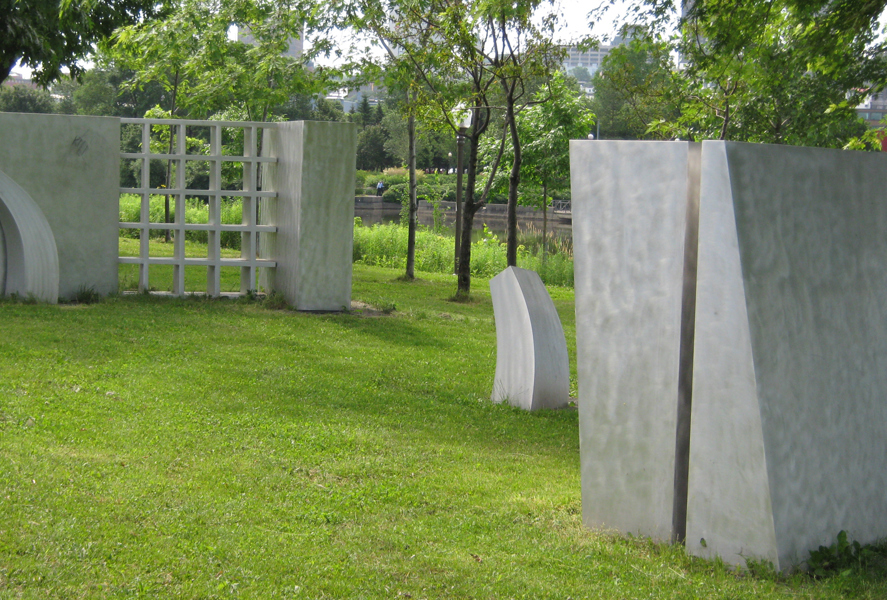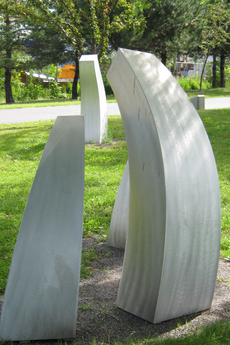 L'artiste se fait géographe dans cette œuvre installée sur la rive gauche de la rivière Saint-Charles. Ces 11 éléments en aluminium brossé matérialisent les particularités géologiques de Québec. On peut y voir la faille de Logan, fracture de l'écorce terrestre qui passe à travers la ville. La grille ajourée est un clin d'œil aux remparts de la cité fortifiée.