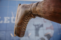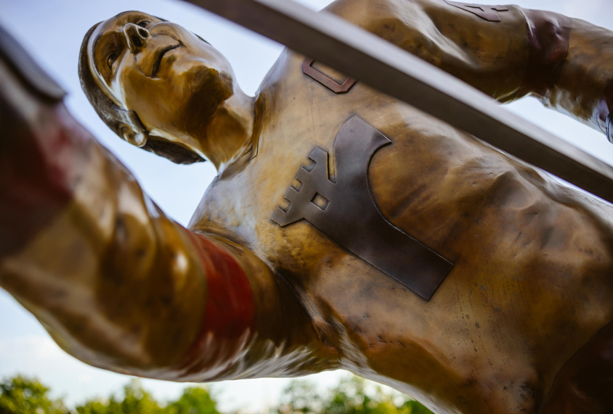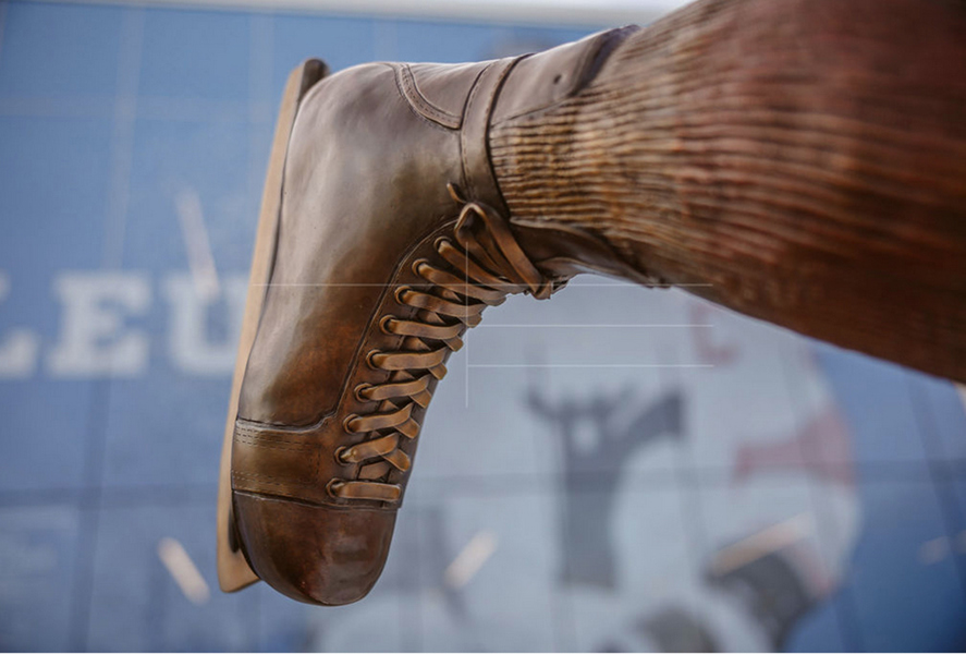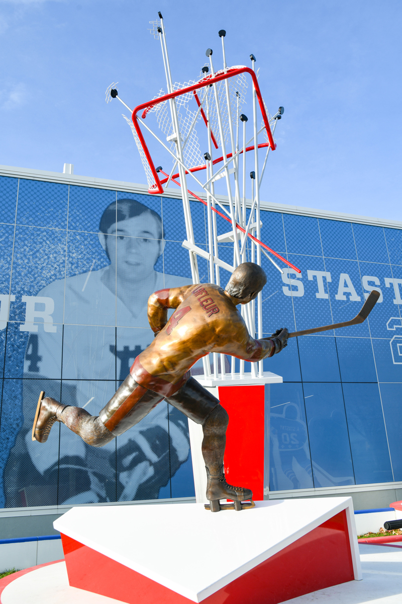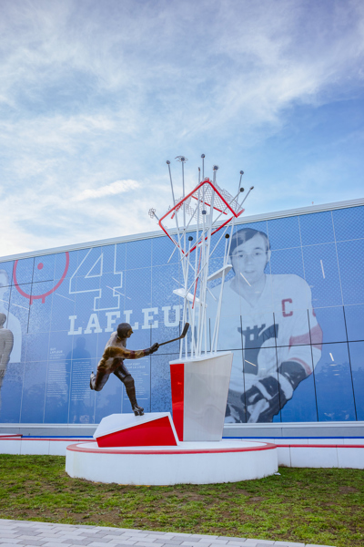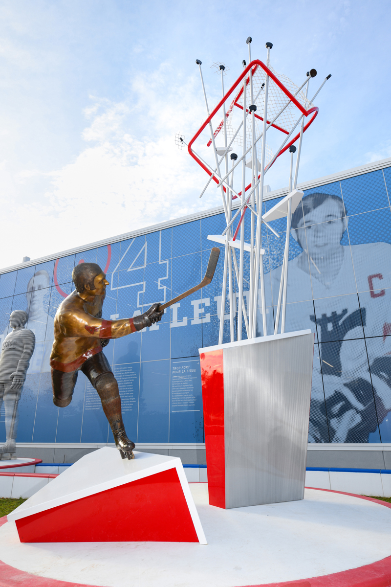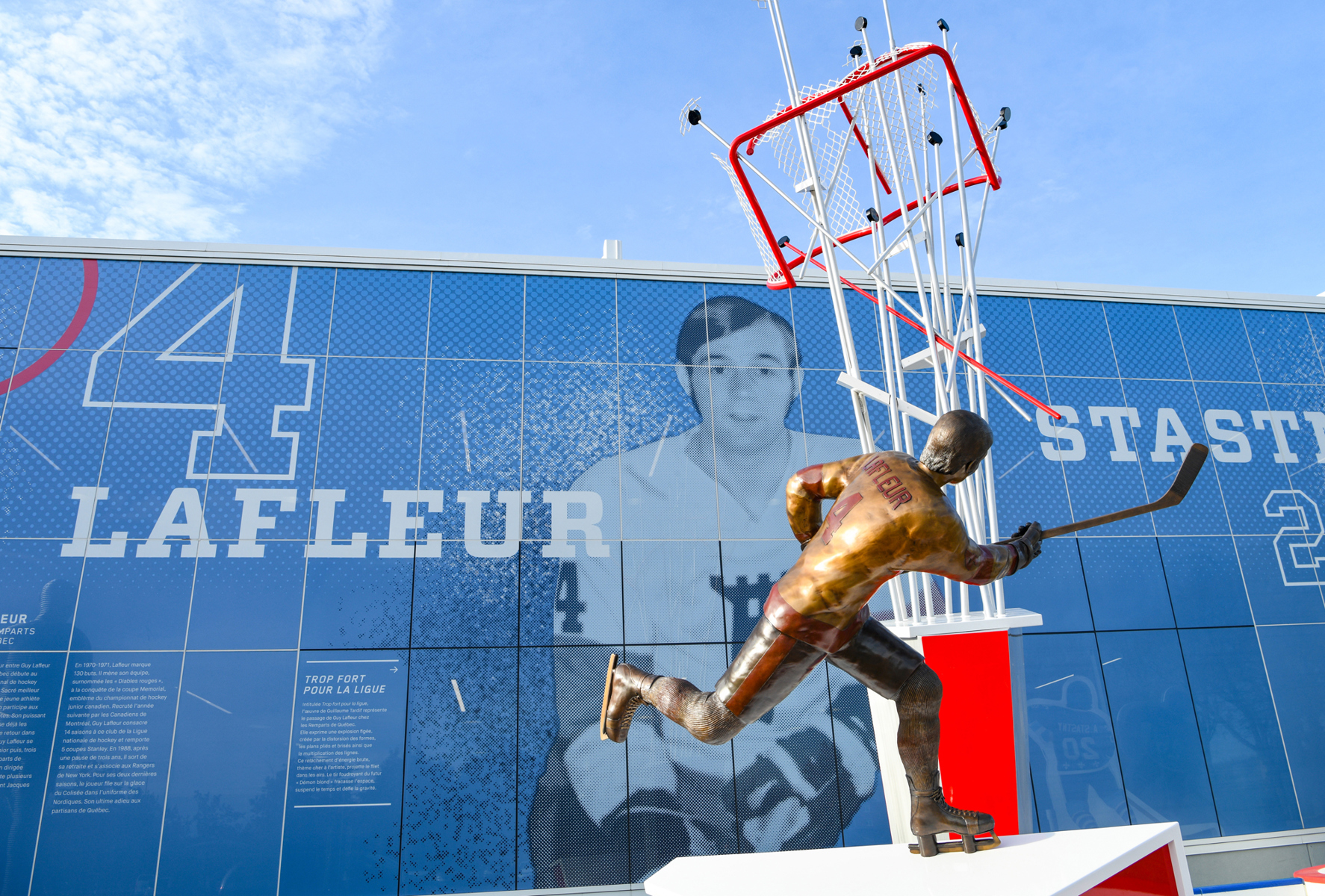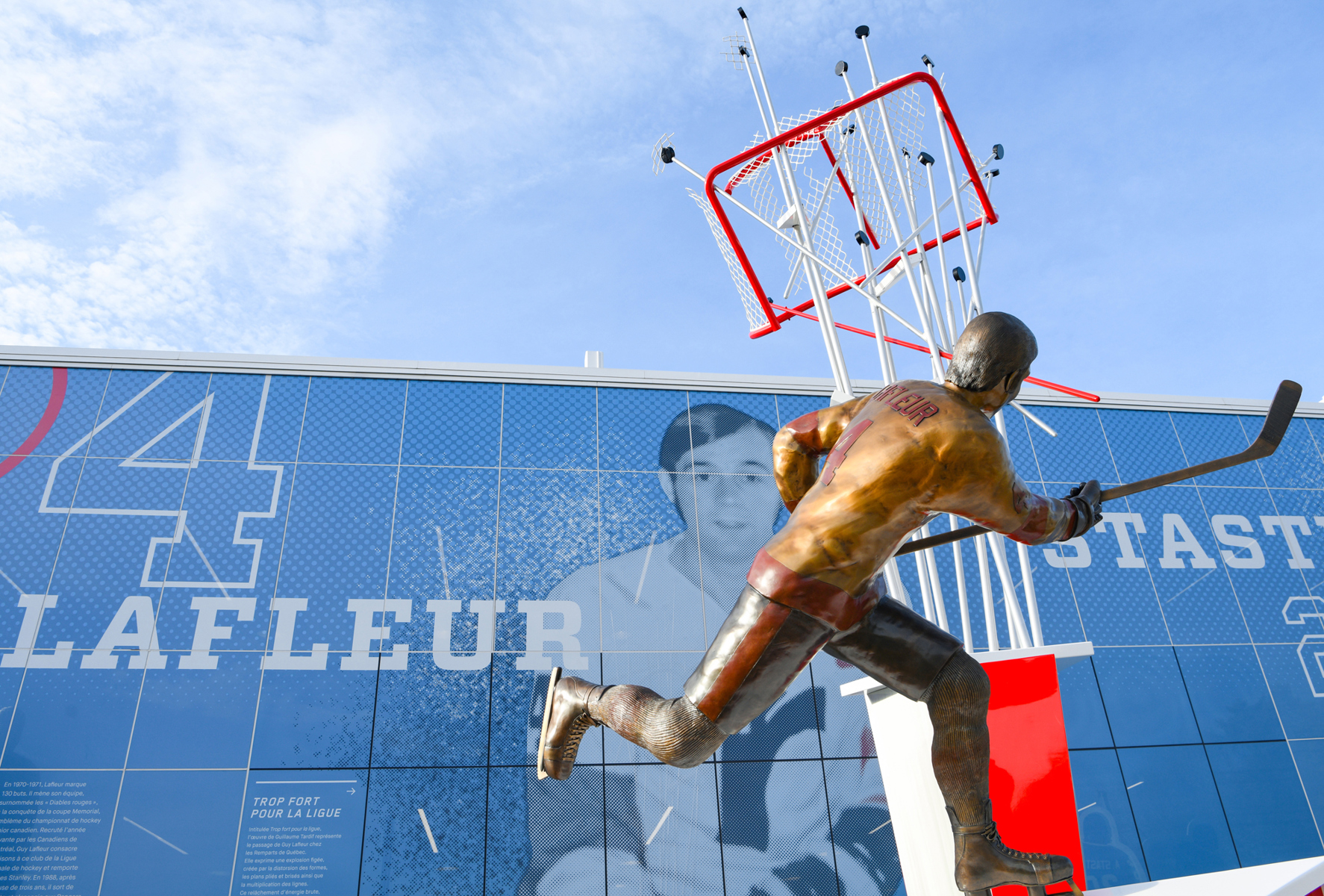 Intitulée Trop fort pour la ligue, l’œuvre de Guillaume Tardif représente le passage de Guy Lafleur chez les Remparts de Québec. Elle exprime une explosion figée, créée par la distorsion des formes, les plans pliés et brisés ainsi que la multiplication des lignes. Ce relâchement d’énergie brute, thème cher à l’artiste, projette le filet dans les airs. Le tir foudroyant du futur « Démon blond » fracasse l’espace, suspend le temps et défie la gravité.